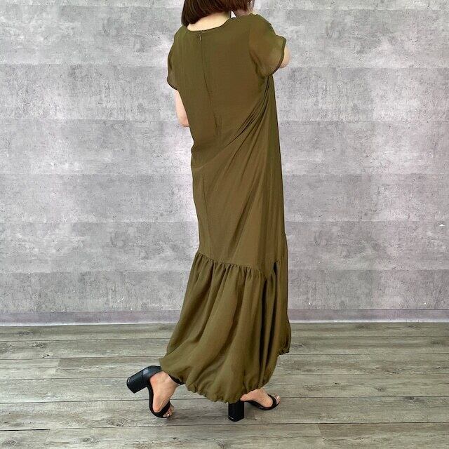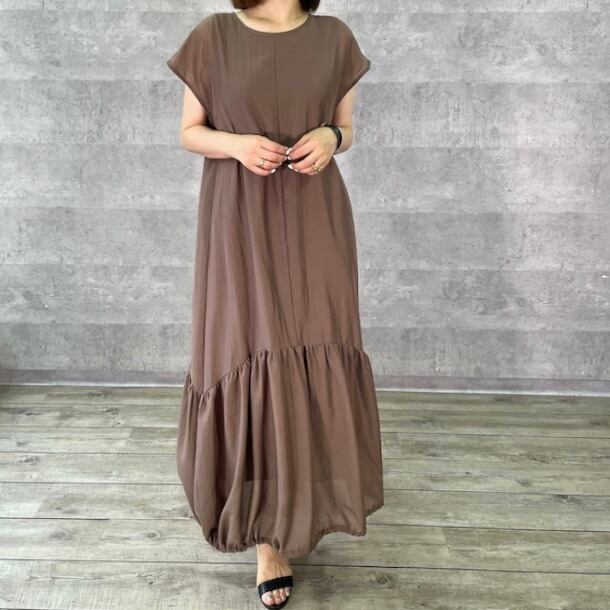 すっきりとした身頃のデザインに、低めの位置の切替えからのボリューム感のあるバルーンシルエットが、とっても女性らしい雰囲気♡