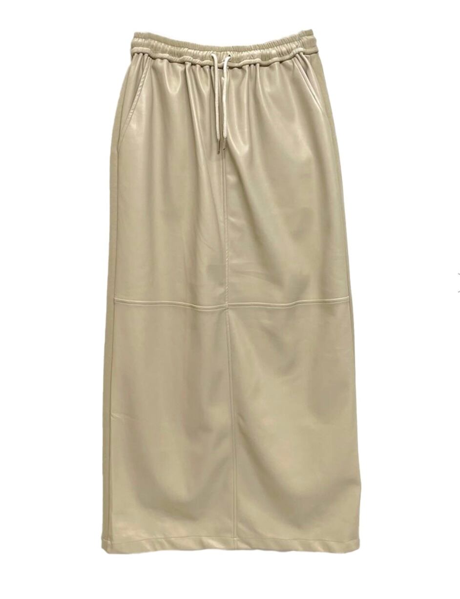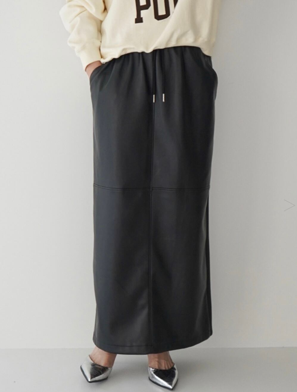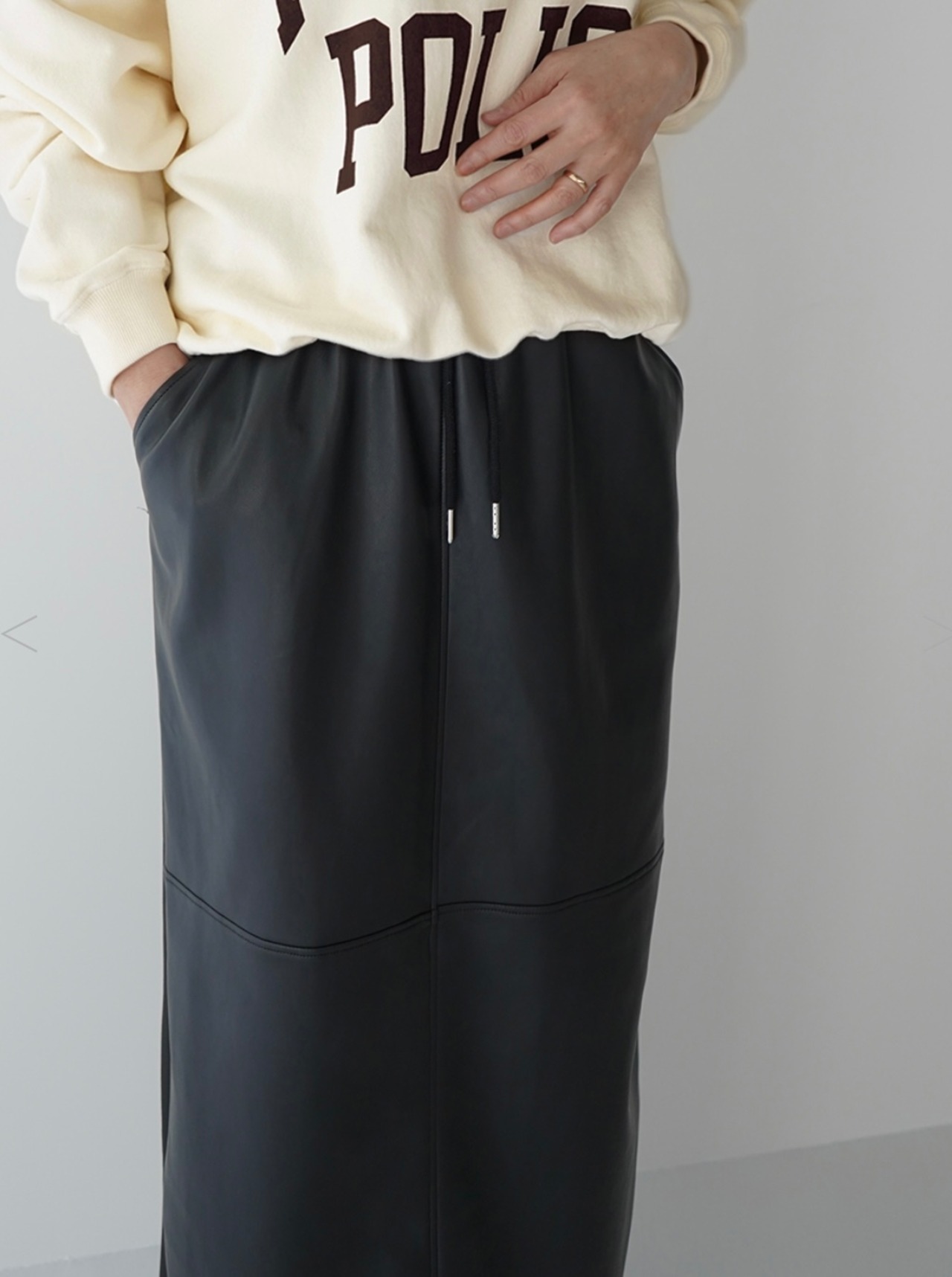 フェイクレザーとポンチを前後で切り替えたイージースカートです。