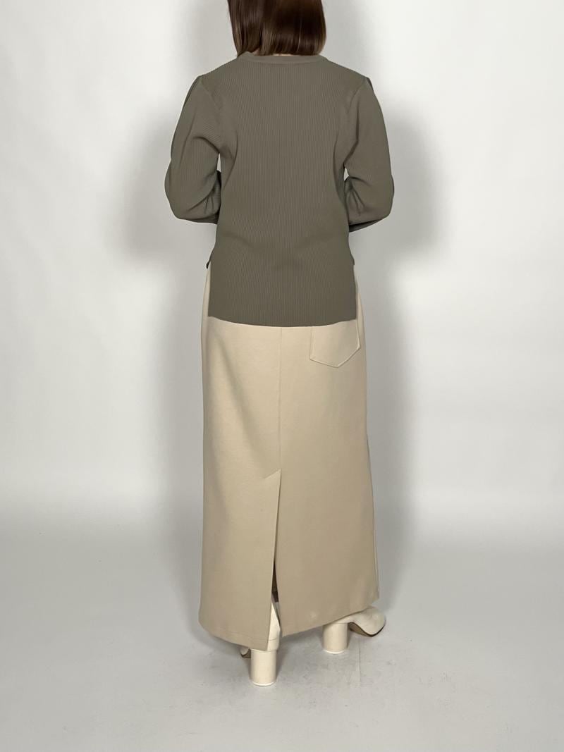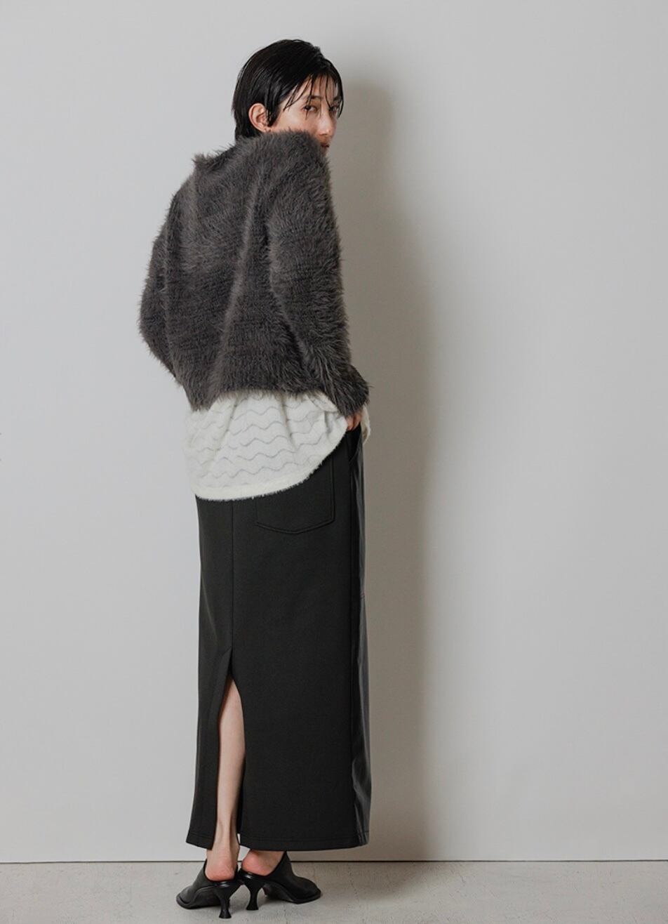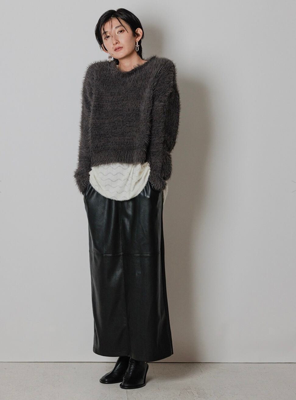 フェイクレザーとポンチを前後で切り替えたイージースカートです。