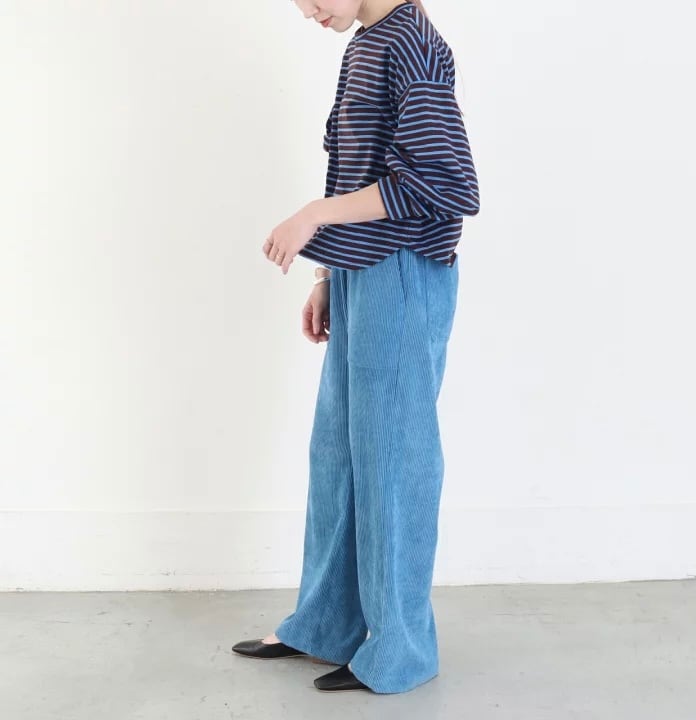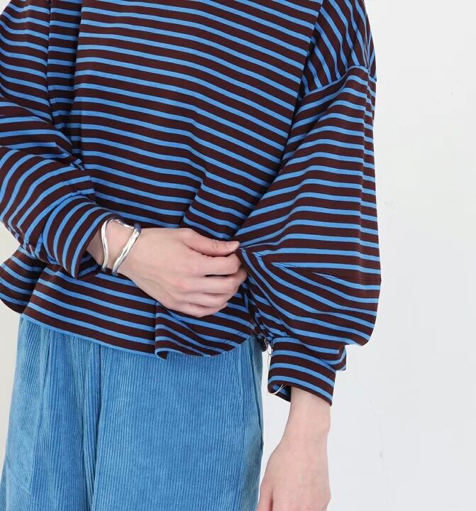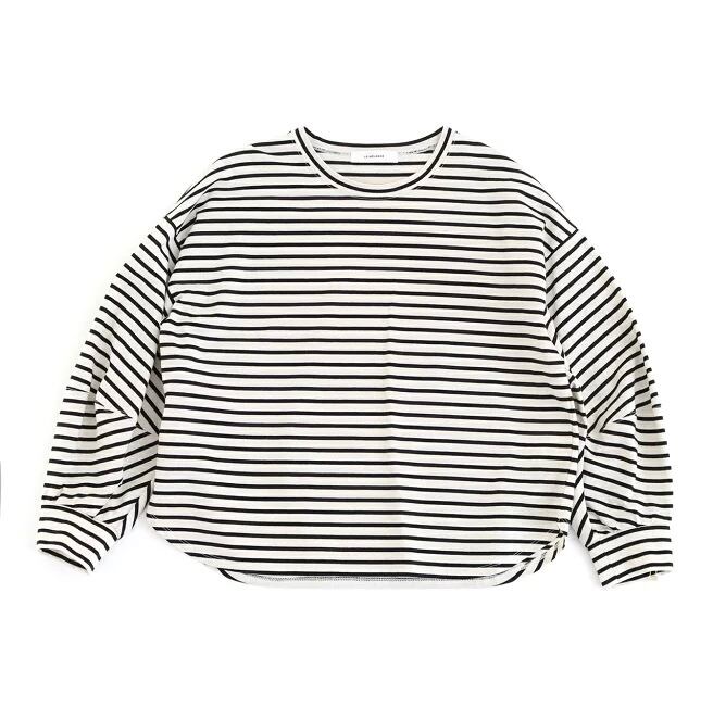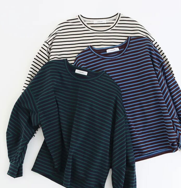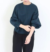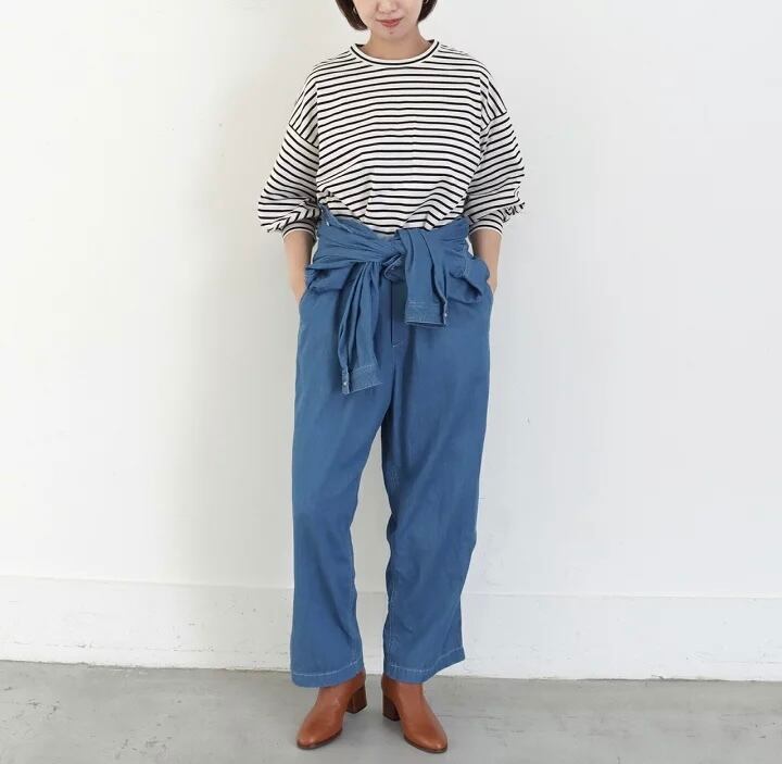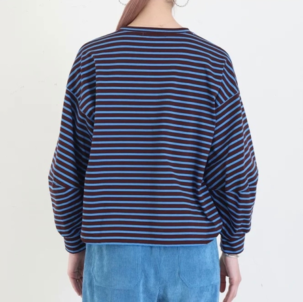 衿ぐりの切り替えもボーダー生地使いでキレイめな印象に♫
