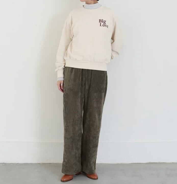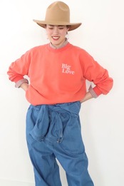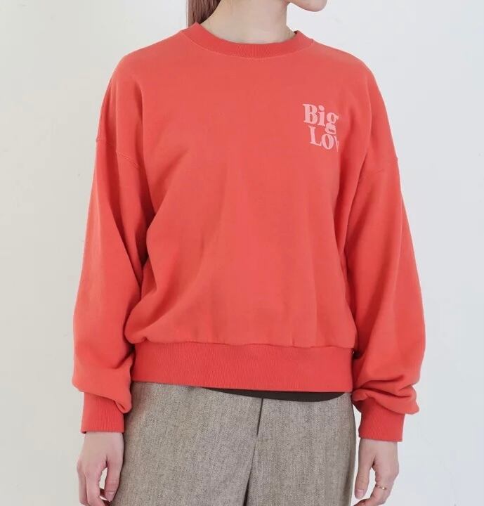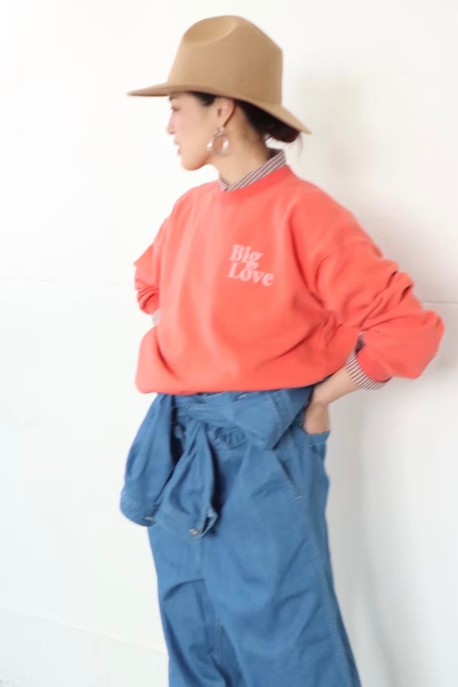 製品洗いタンブラー仕上げで、くたっとした風合いに仕上げたゆったり身頃のコンパクトな丈のトレーナーです。