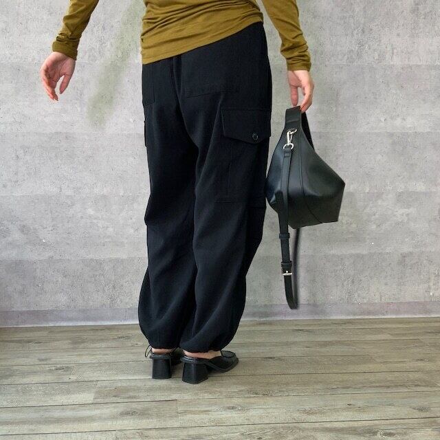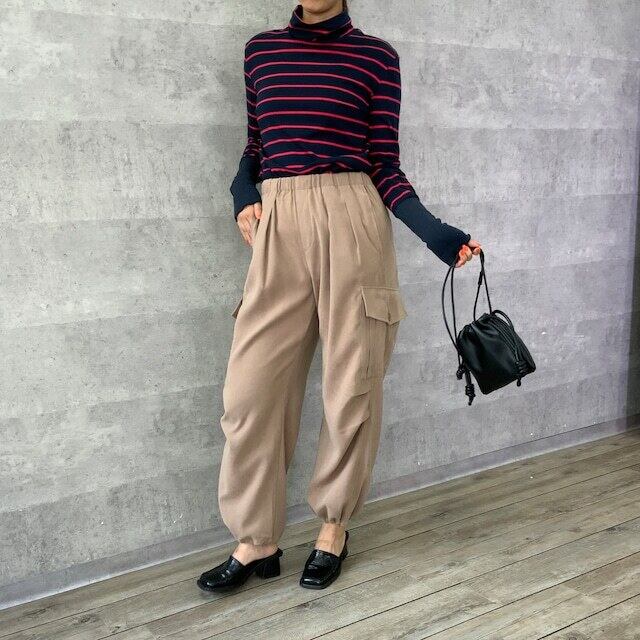 ワーク感の強いカーゴパンツを品の良い柔らかい生地で仕上げ、大人の女性に似合う一本に◎