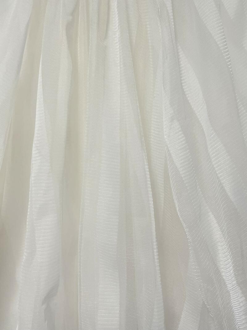 トレンドのチュール素材でストライプ柄になった特徴的な素材。