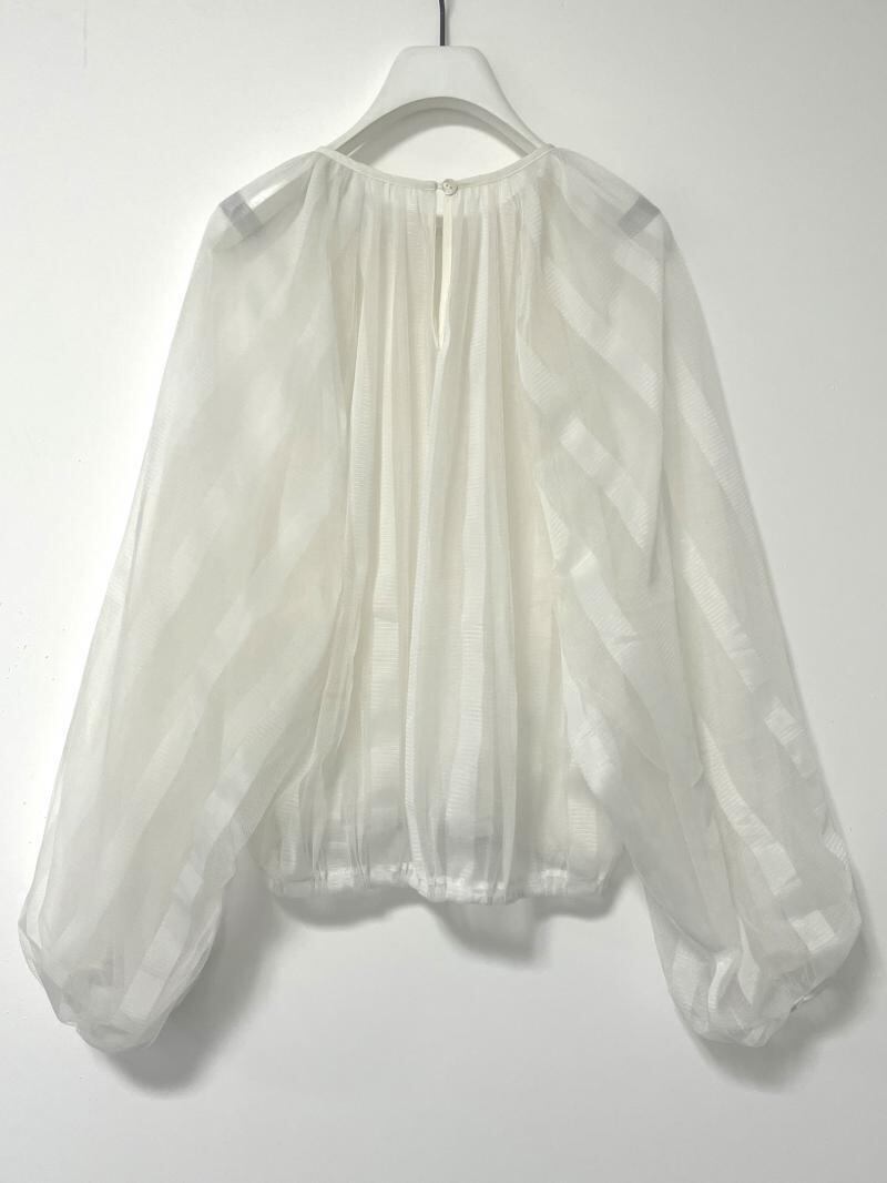 軽い素材感とギャザーいっぱいのボリューム感でクラシカルなブラウスに仕上げ、カジュアルスタイルはもちろん、華やかなパーティーシーンにもスタイリングが映える1枚です✳︎✳︎✳︎