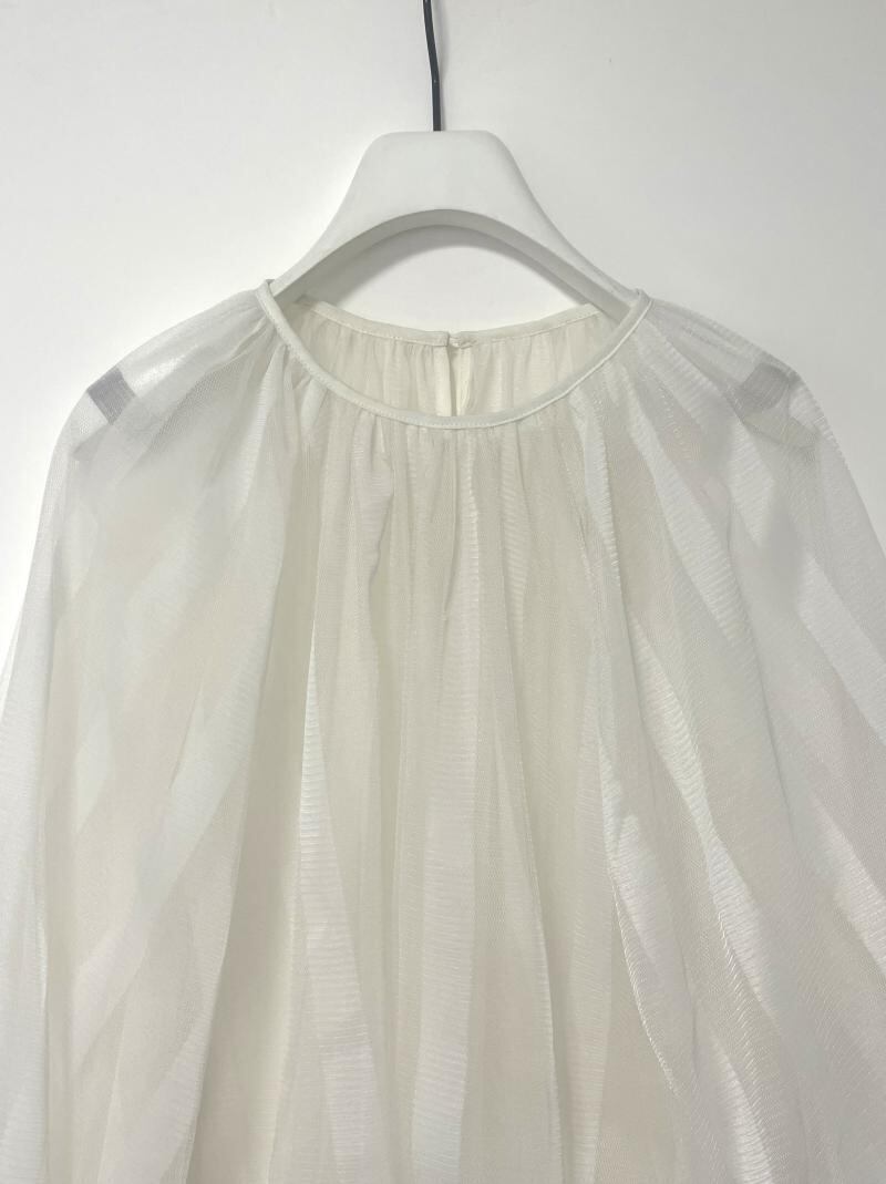 軽い素材感とギャザーいっぱいのボリューム感でクラシカルなブラウスに仕上げました。