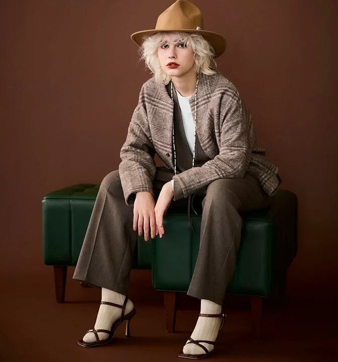 ウールとリサイクルポリエステルを複合し、温かみのあるウール合繊の良さをバランス良くブレンドしたエコ素材です。