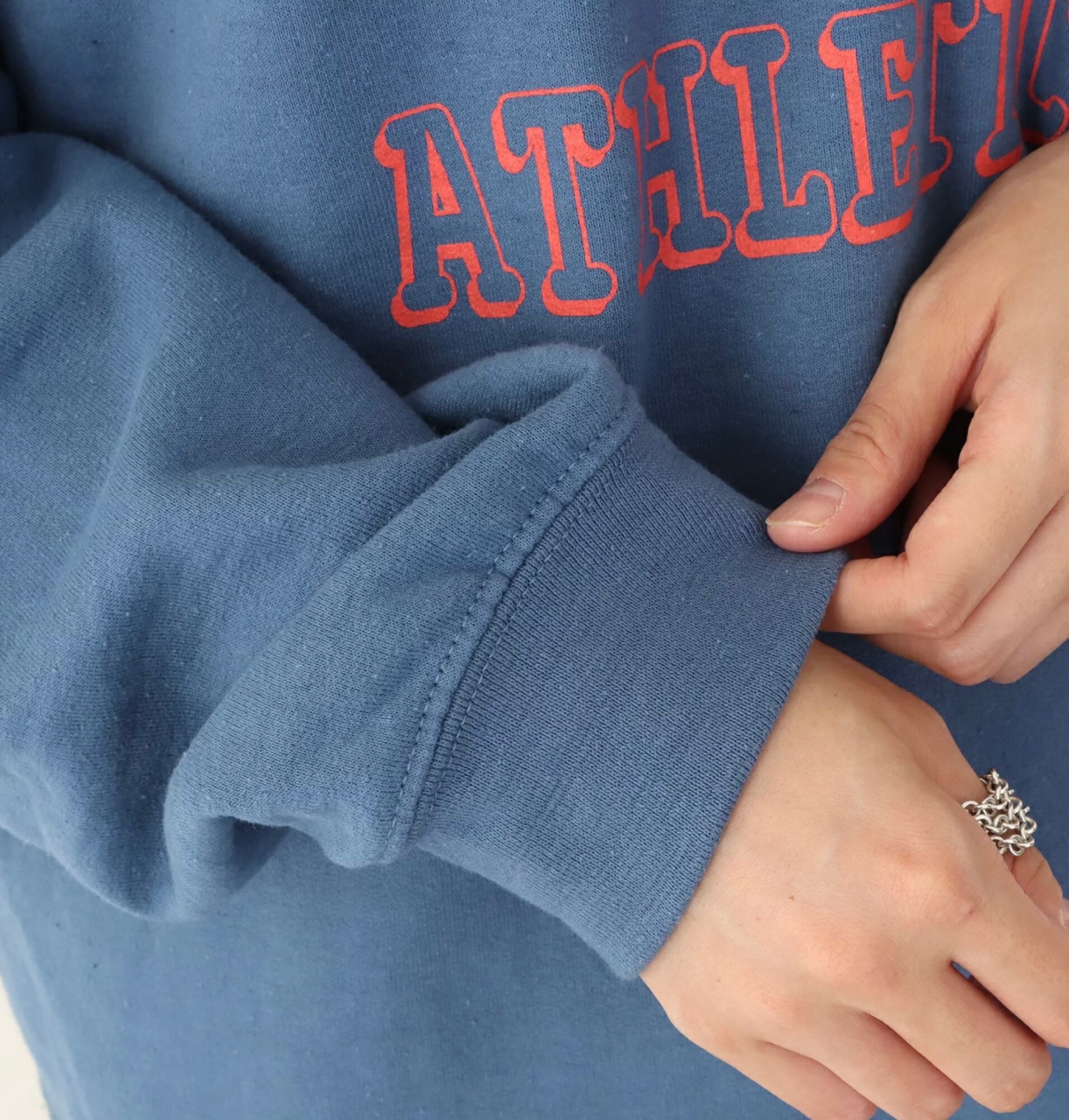 コットン、ポリエステル混紡のバックフリースパイル生地で、柔らかさが特徴スウェットです。