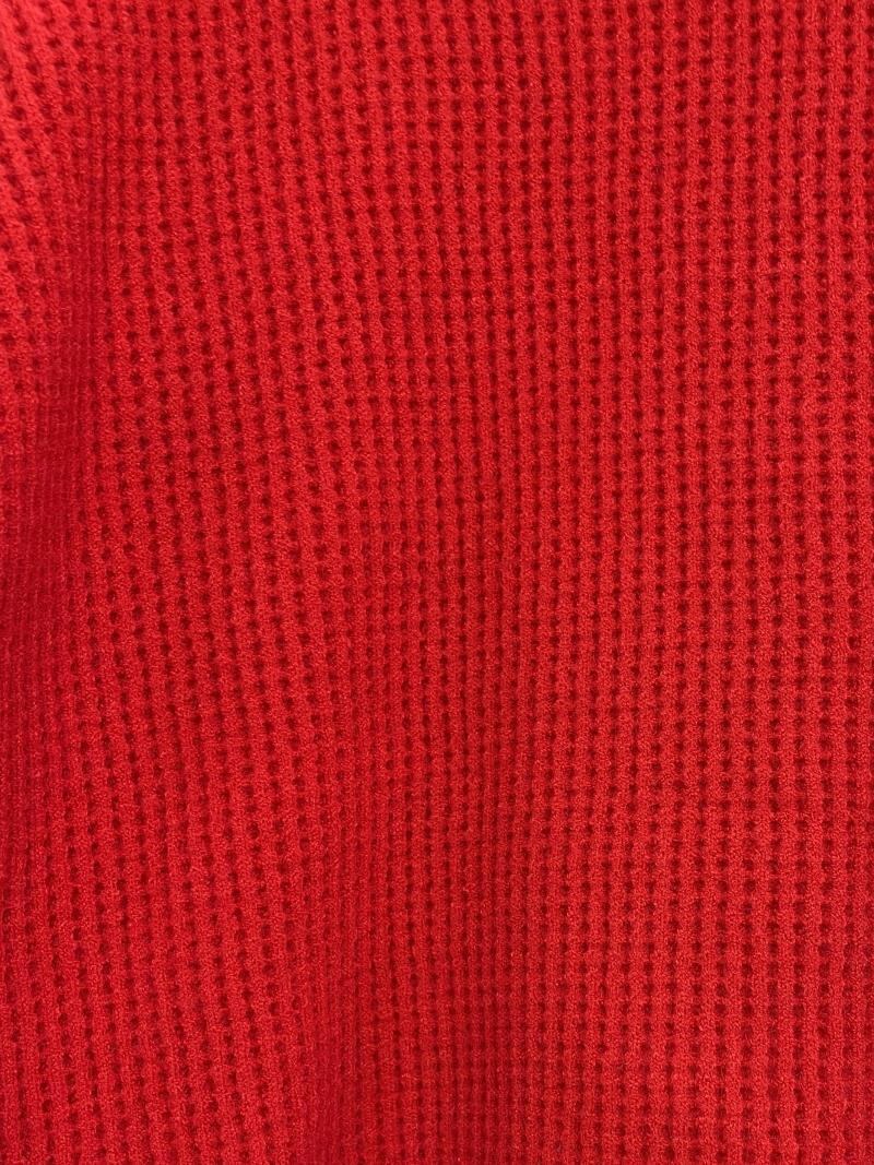 少しもちもちとした合繊糸を使用し、サーマル編みに仕上げました。