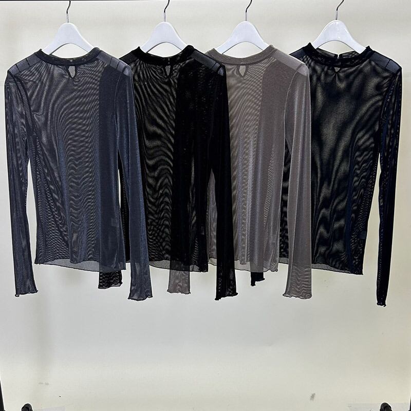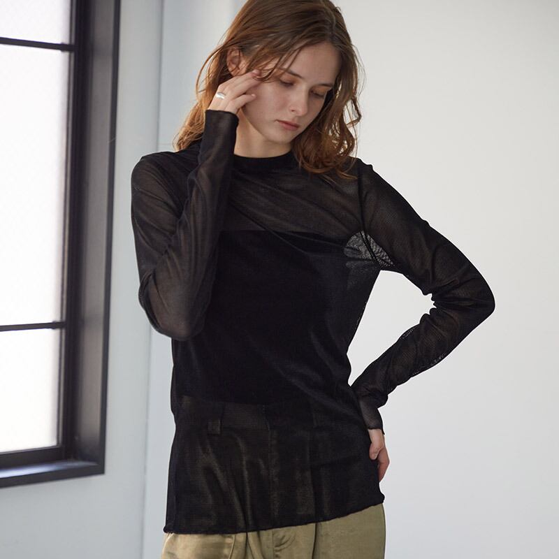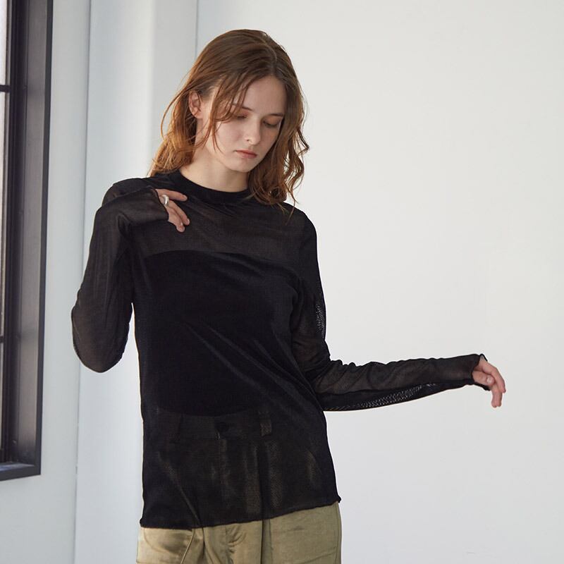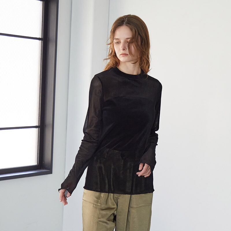 秋冬のレイヤードにピッタリなベロアメッシュクルーインナー。