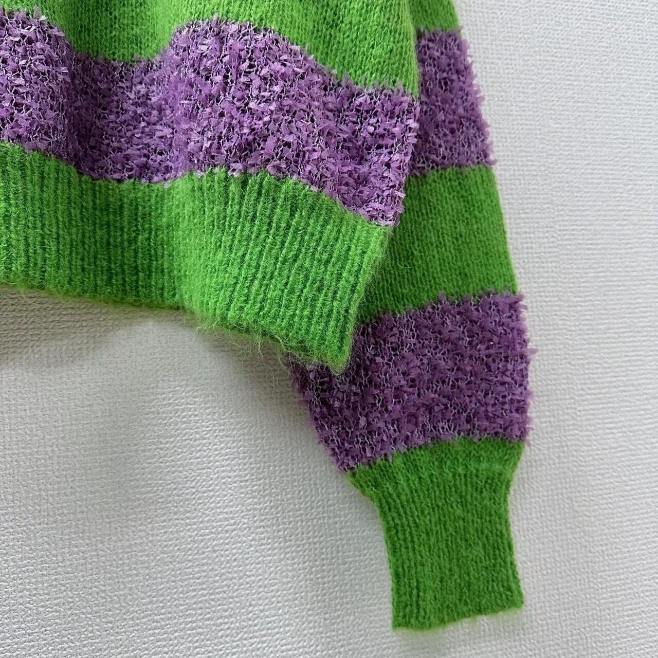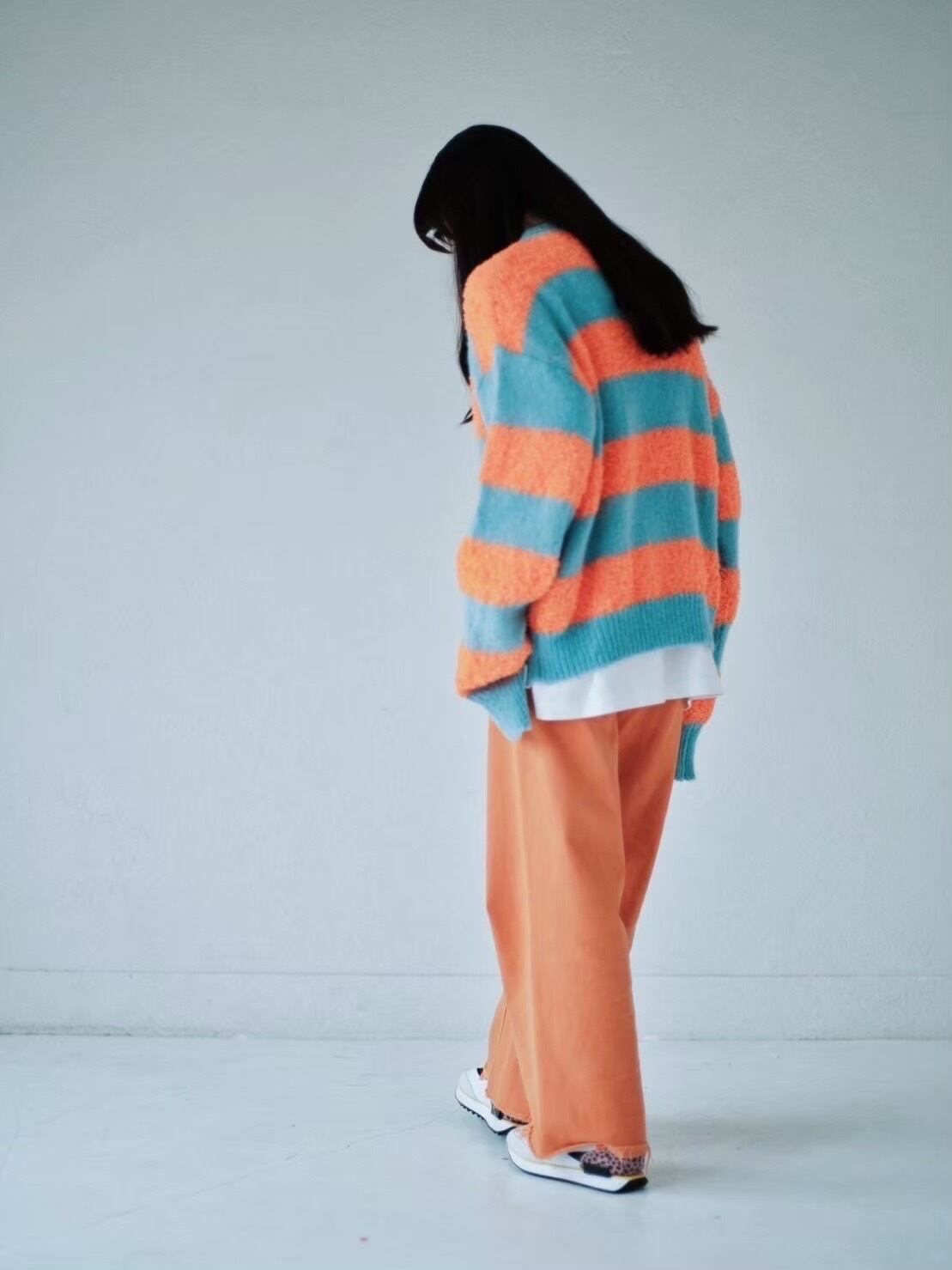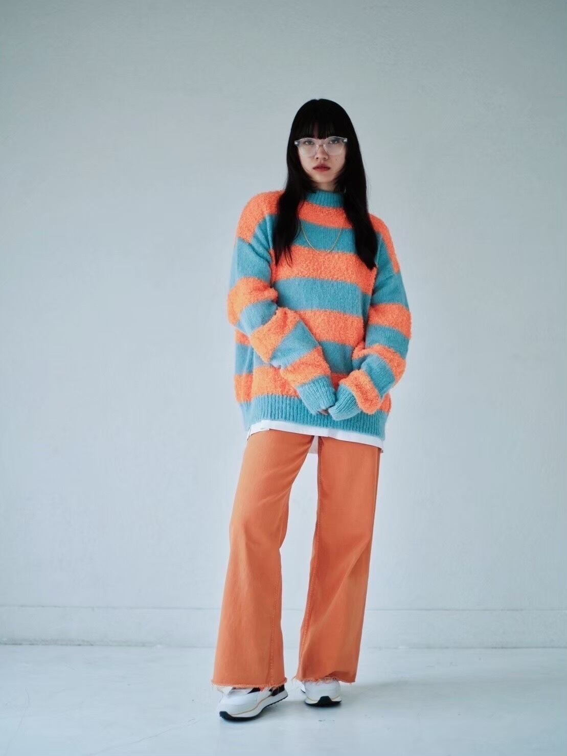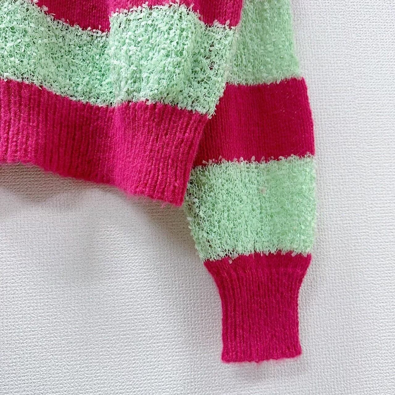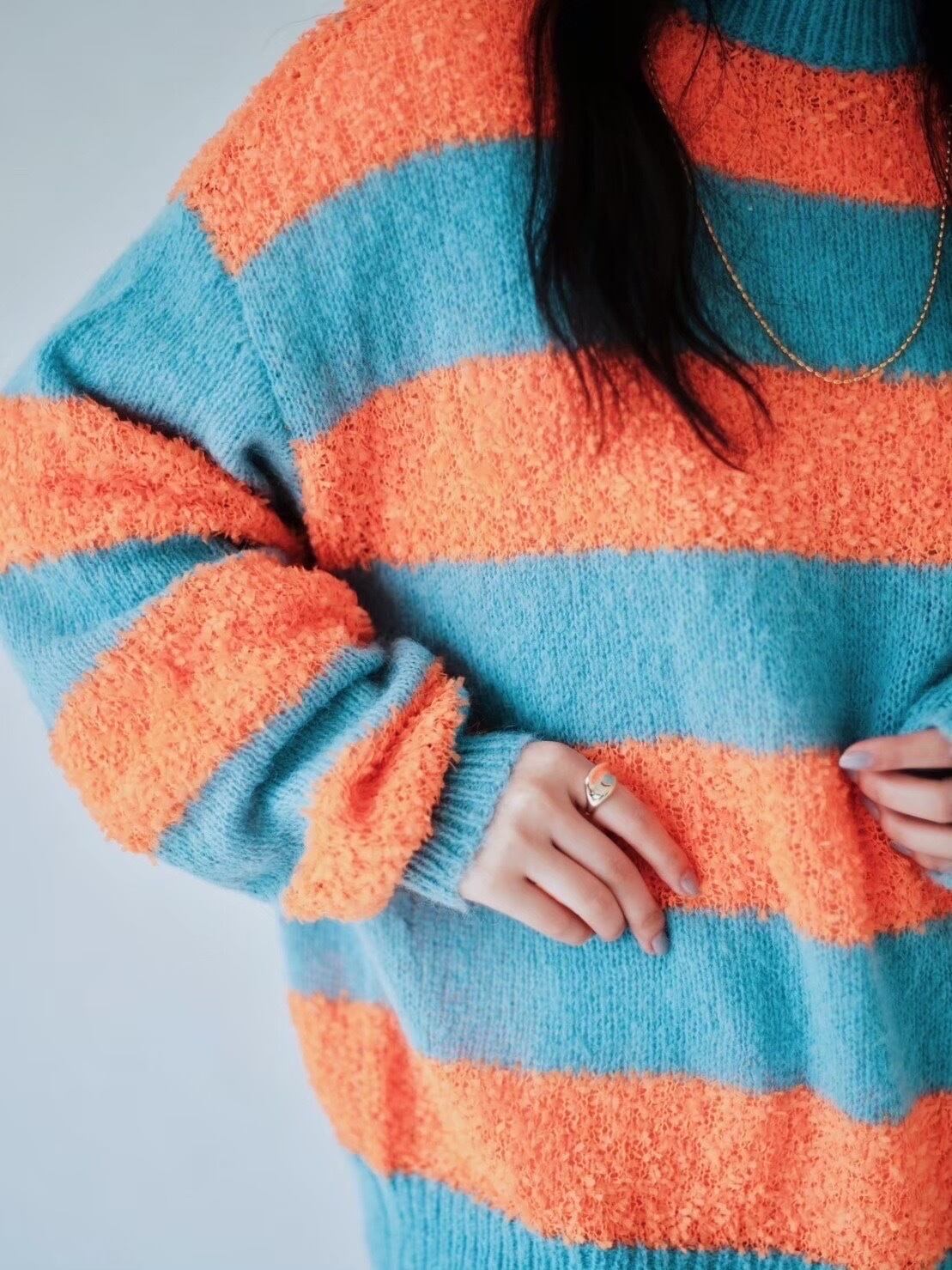 異素材を組み合わせたカラフルなボーダーニットプルオーバー。