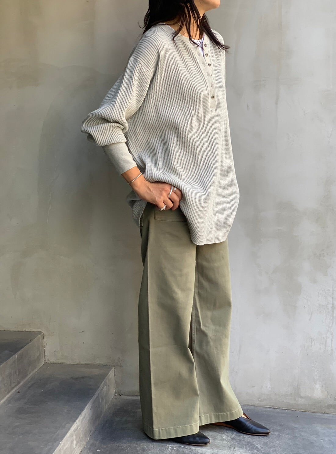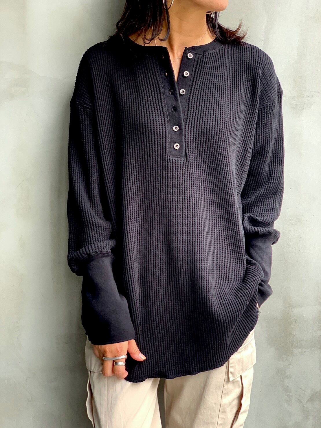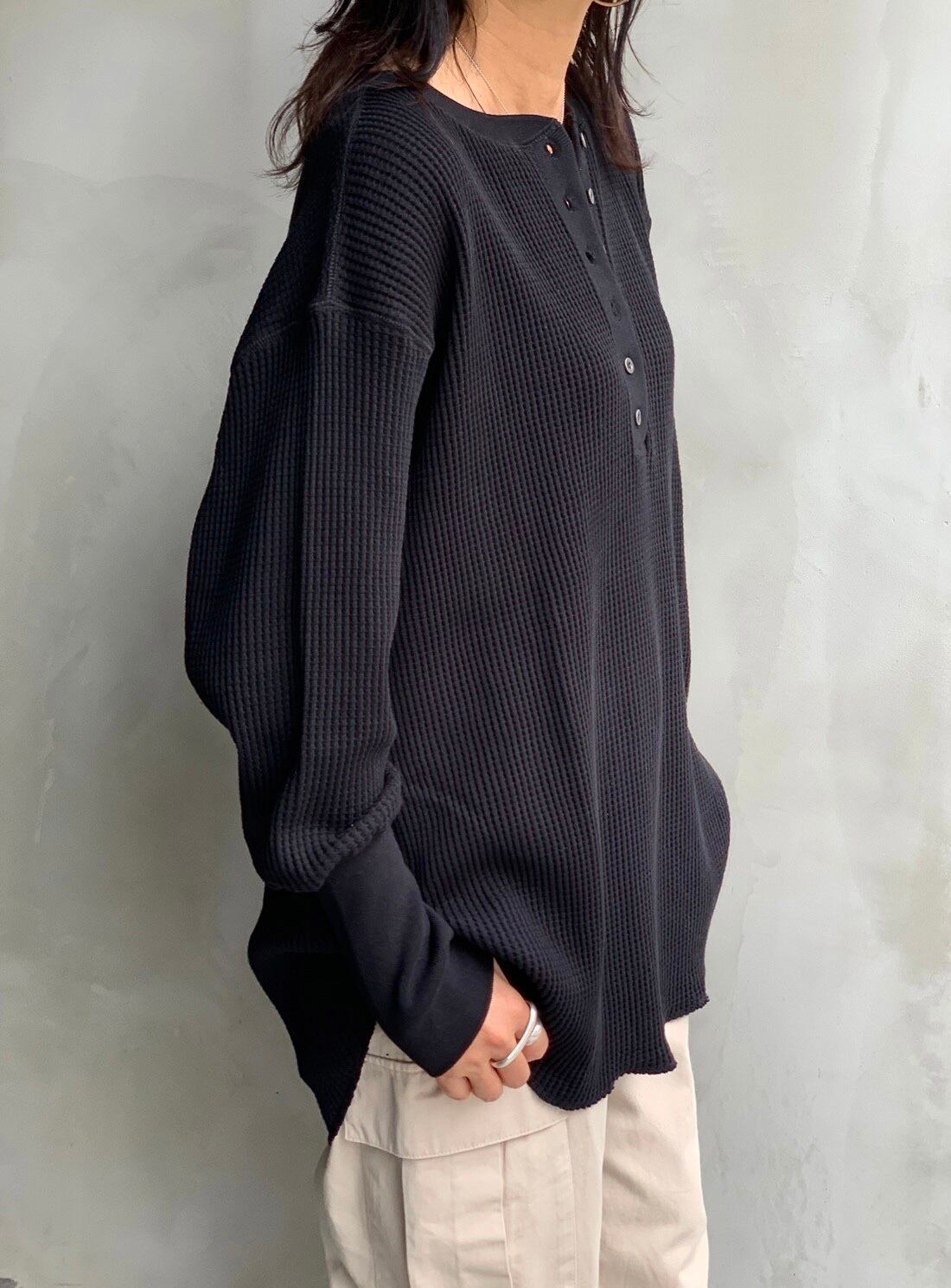 ワッフルヘンリーネックロンT