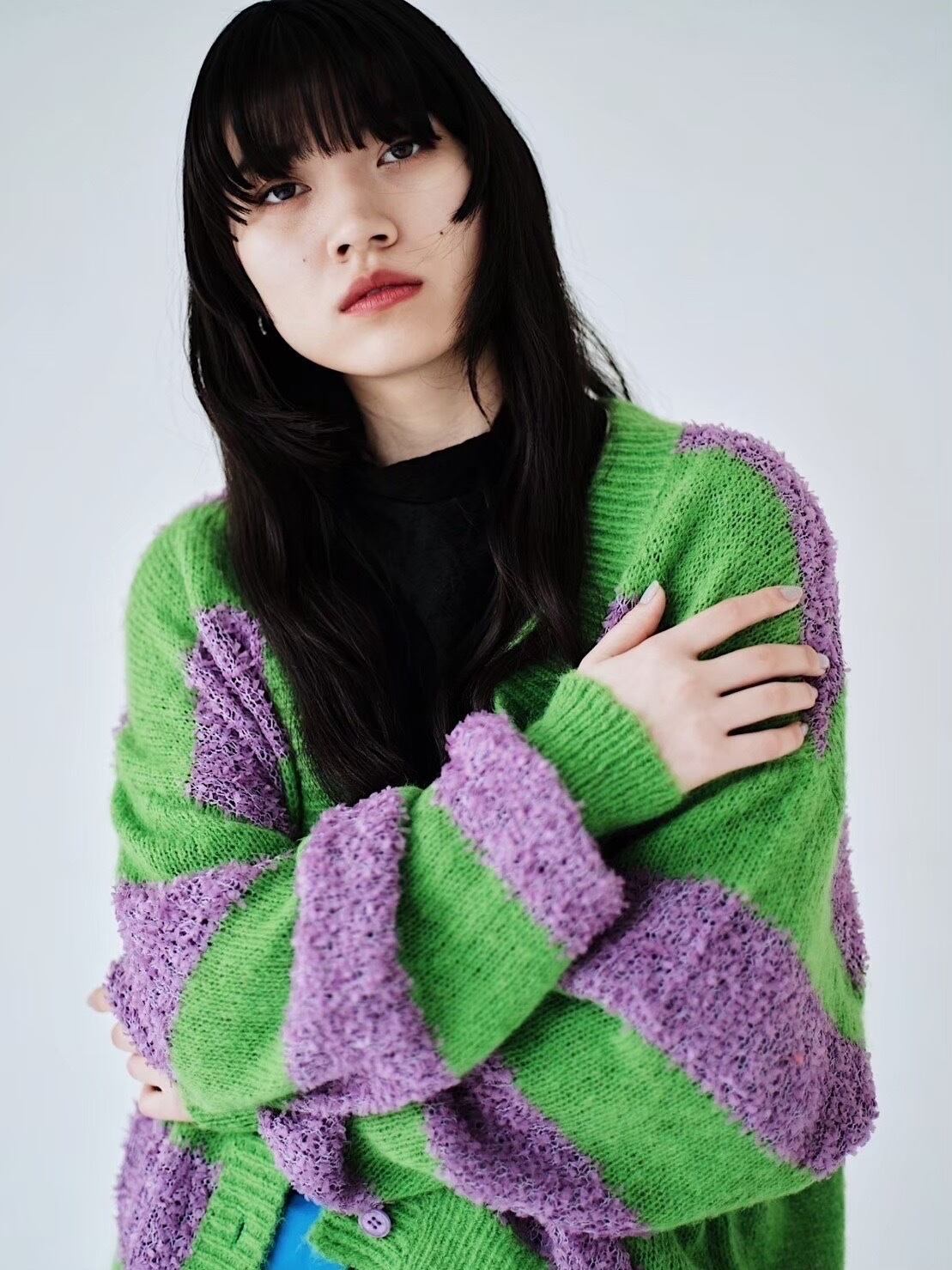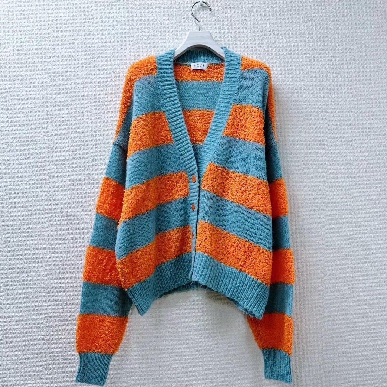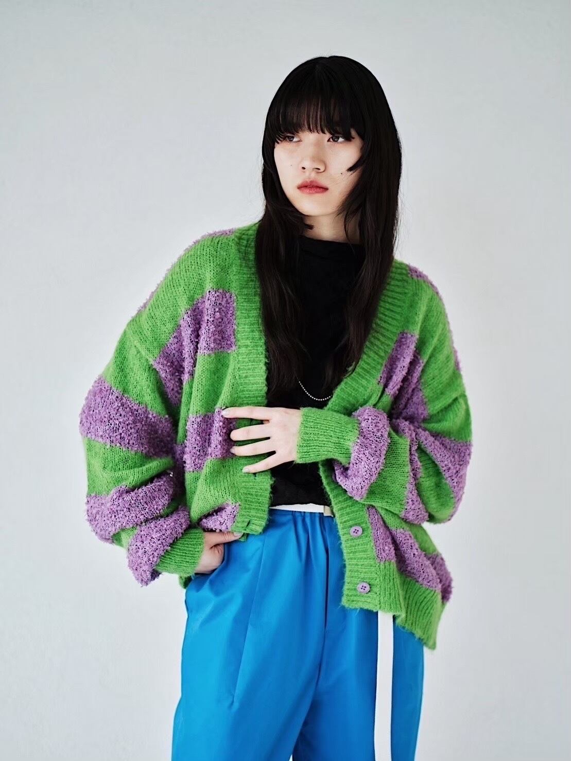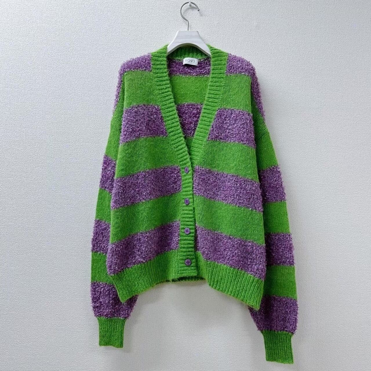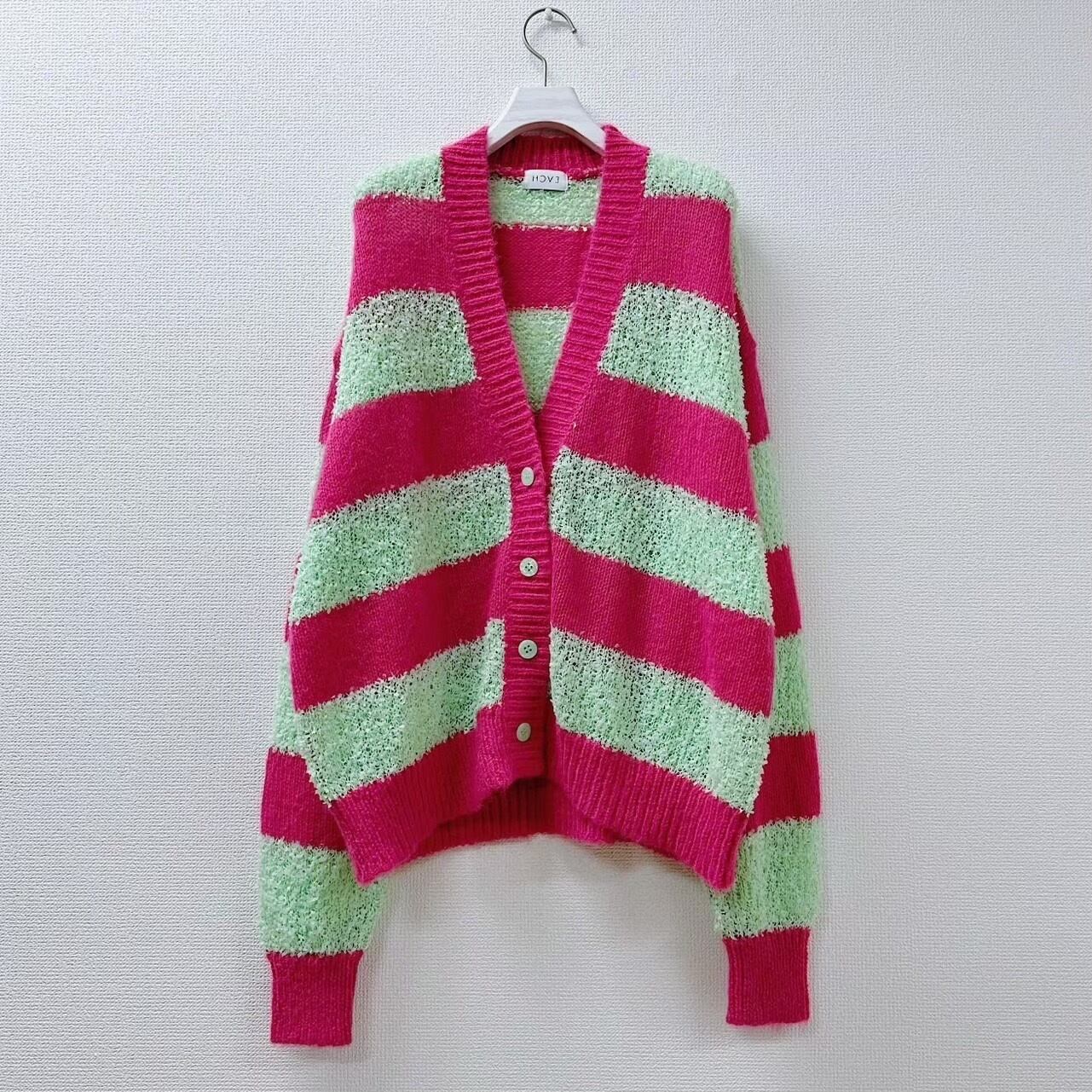異素材を組み合わせたカラフルなボーダーニットカーディガン。