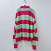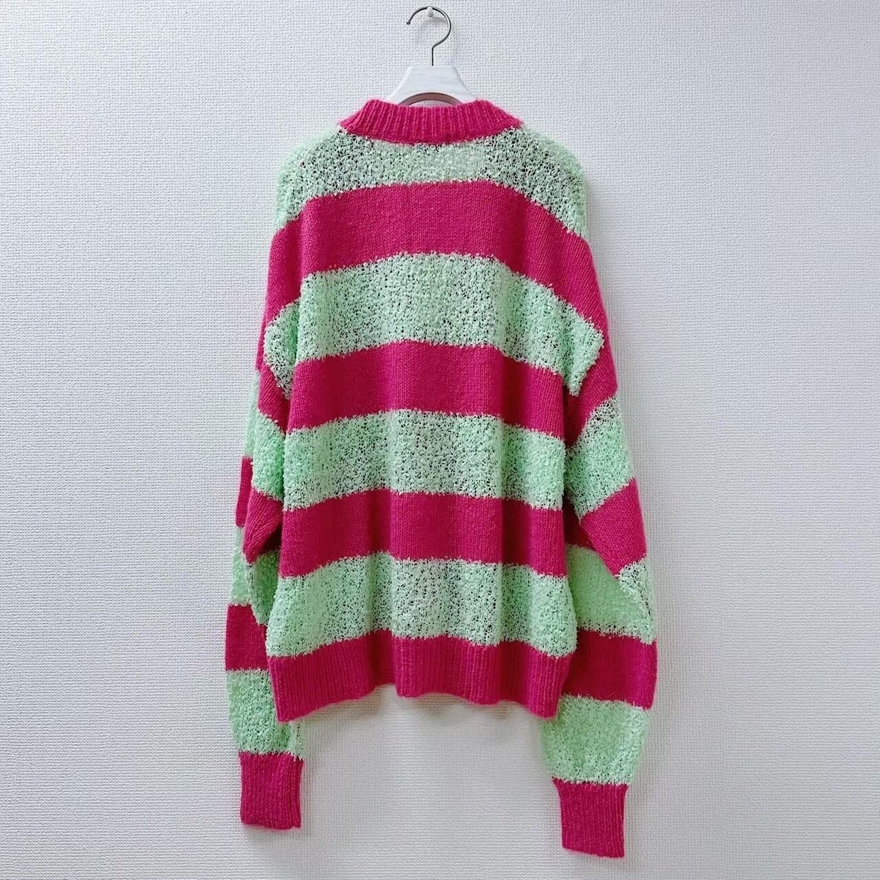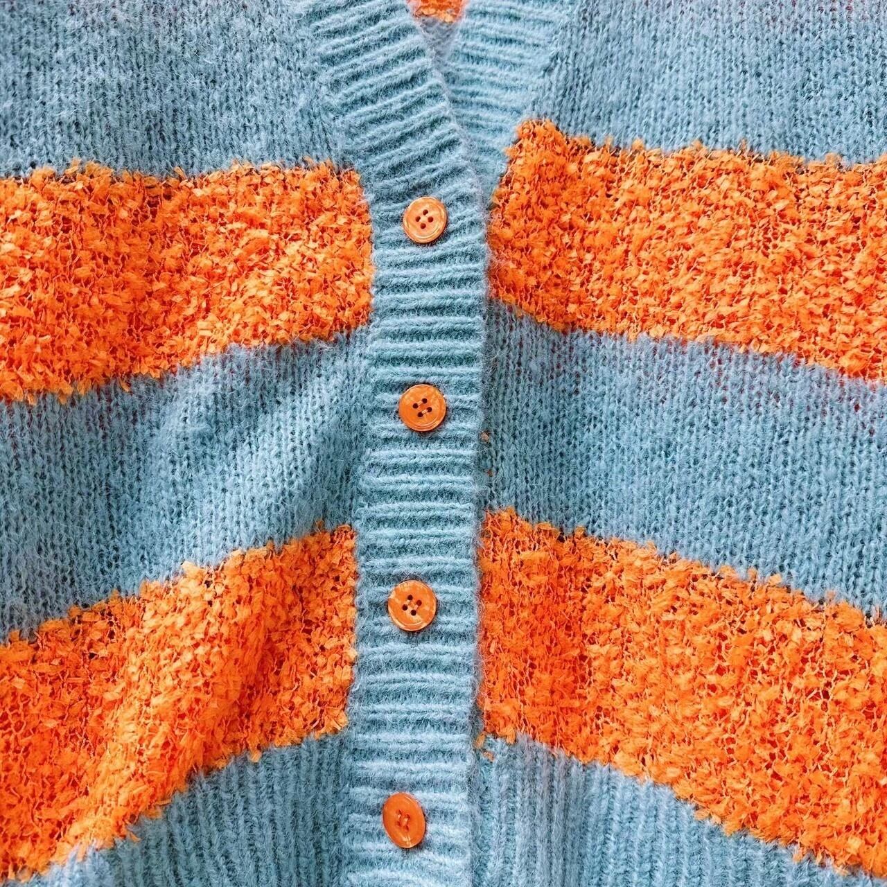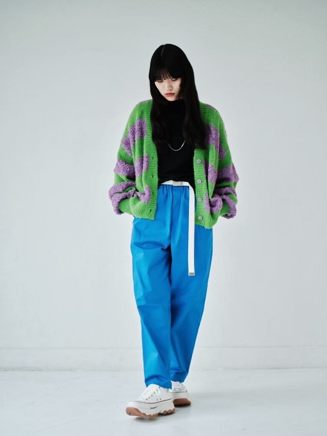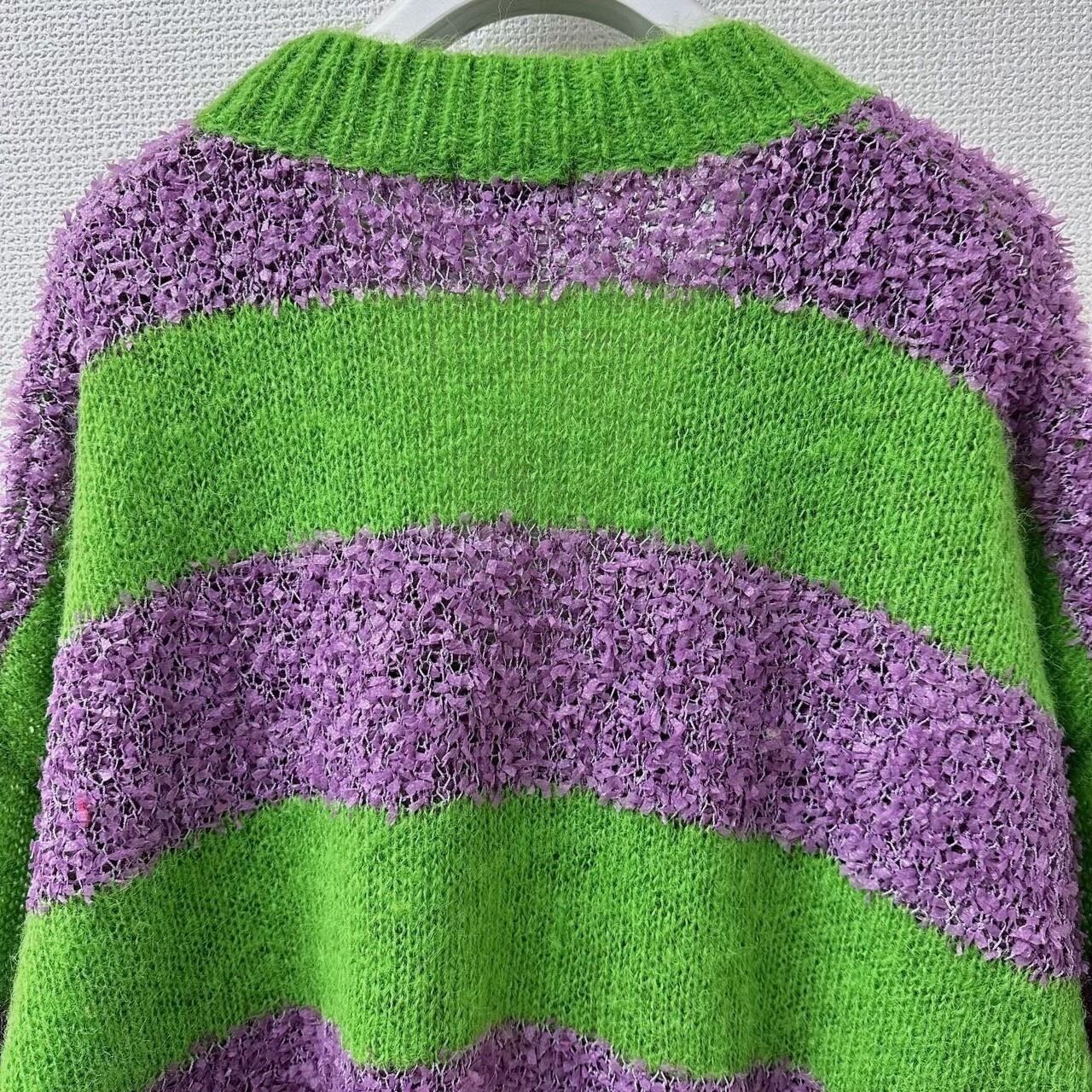 異素材を組み合わせたカラフルなボーダーニットカーディガン。