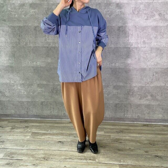 ゆるっとしたシルエットも裾に向かって細くなるので、キレイに着用していただけます。