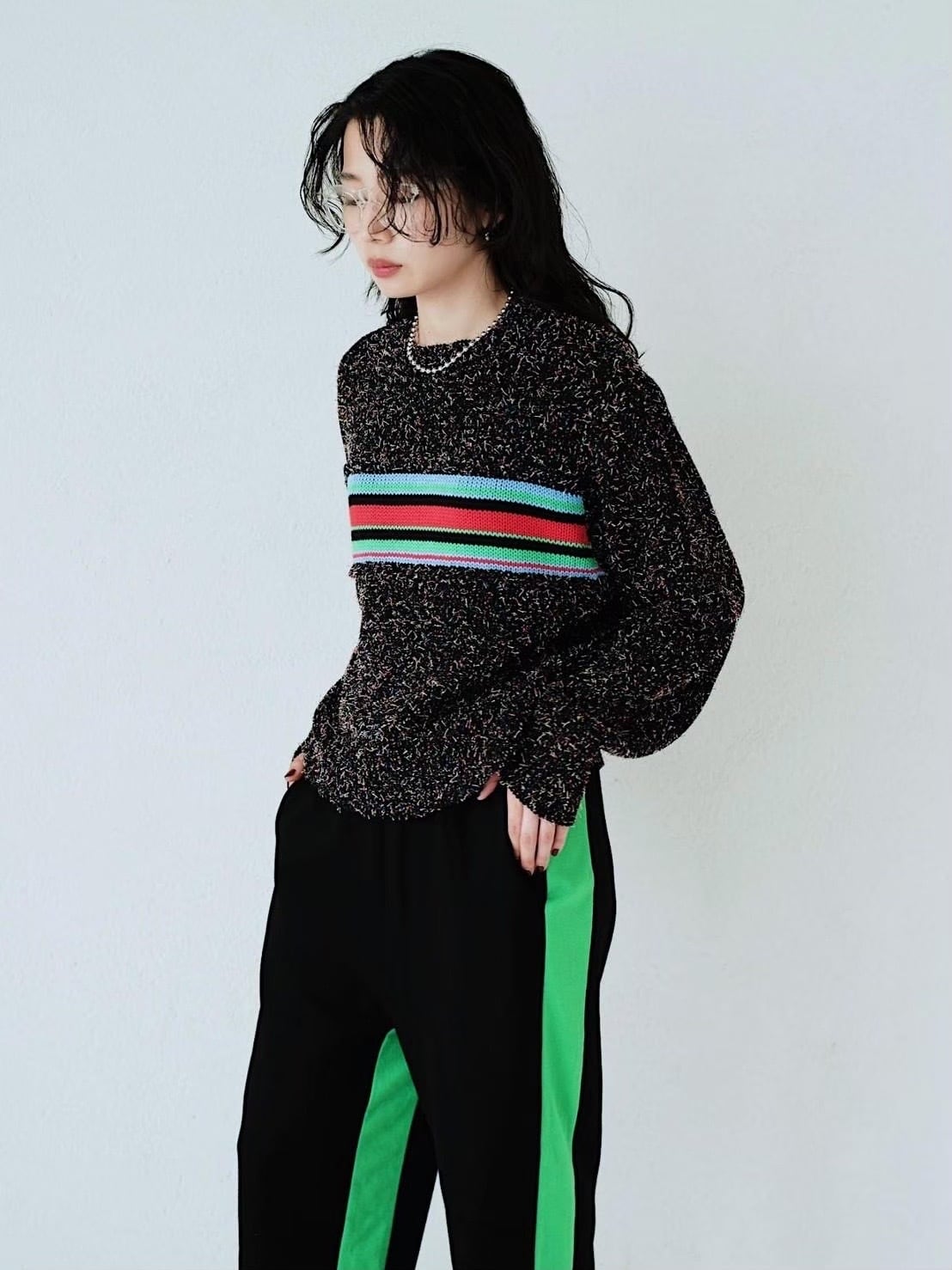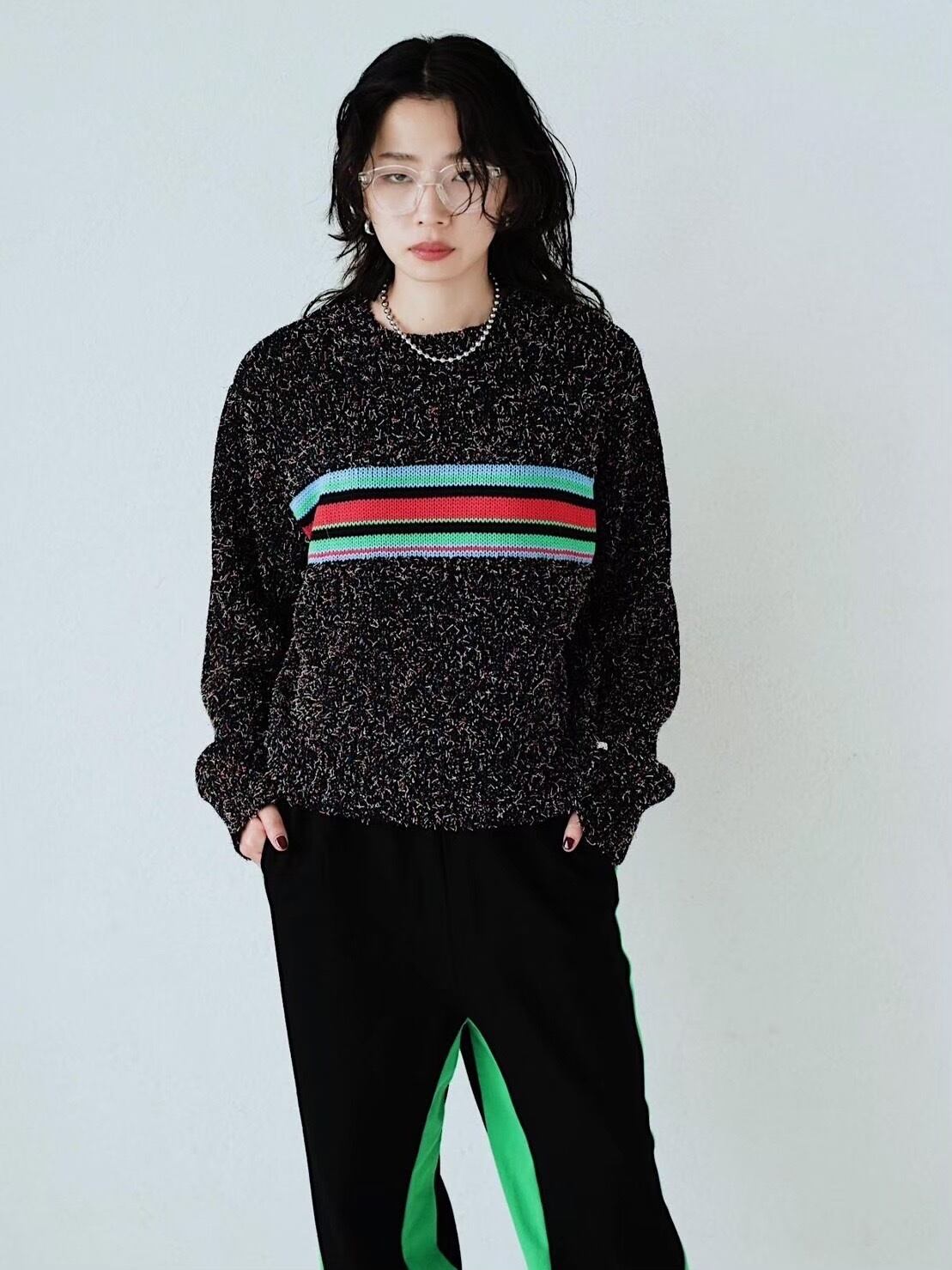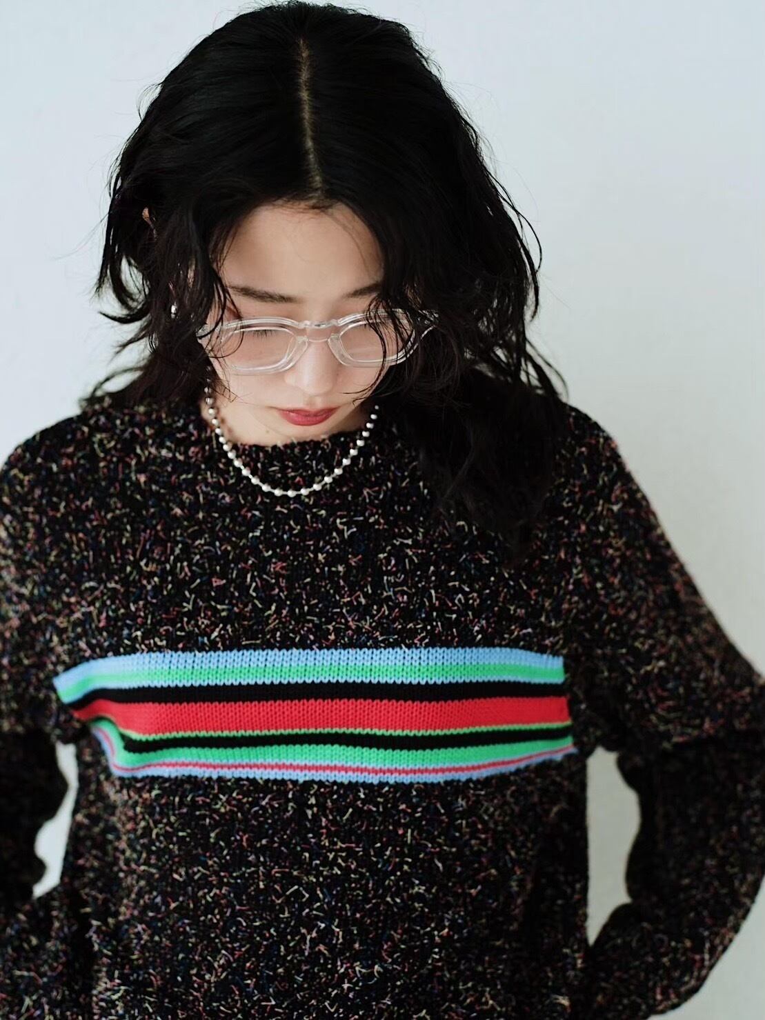 色々なカラーがMIXされた雰囲気のある糸を使用した、カジュアル見えのニットです。