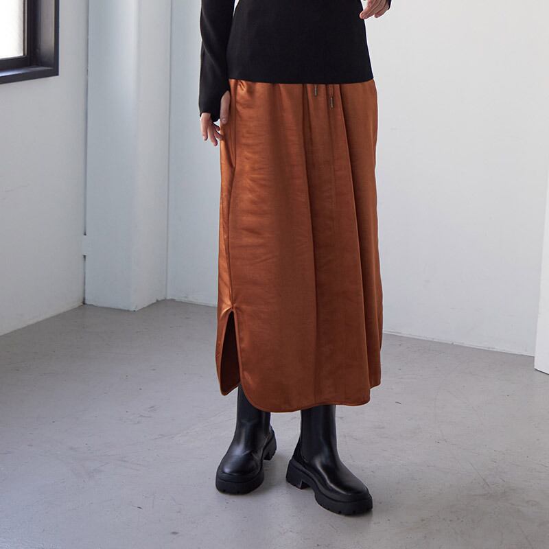 後のタックの施しが立体感と、裾に緩やかなさりげないカーブを作り、シンプルでもデザイン性がある1枚に。