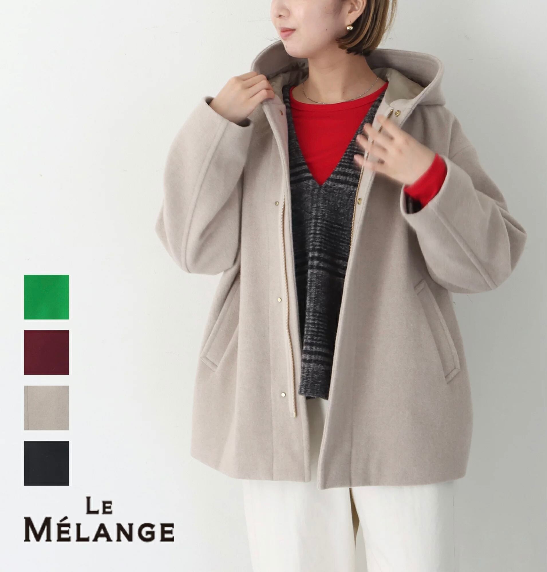 フロントはファスナーとブラインドホック仕様でシンプルに、ベーシックカラーに、Le Melangeらしいパキッとしたグリーンやこっくりとしたバーガンディの4色展開です。