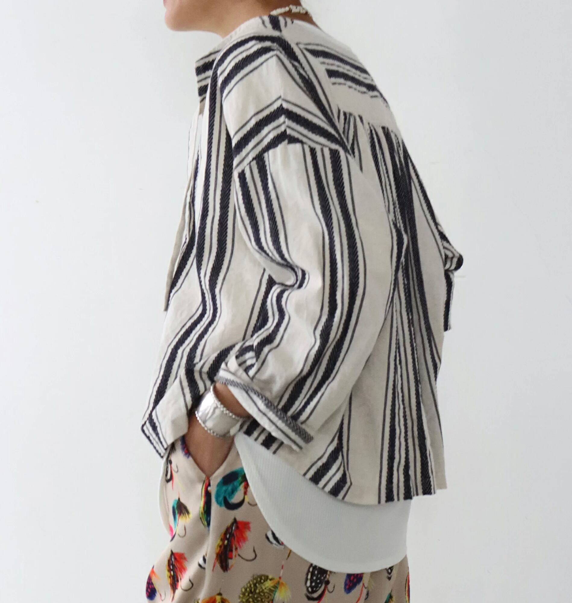 短い丈が太めのシルエットのパンツとバランスを取りやすくなってます。