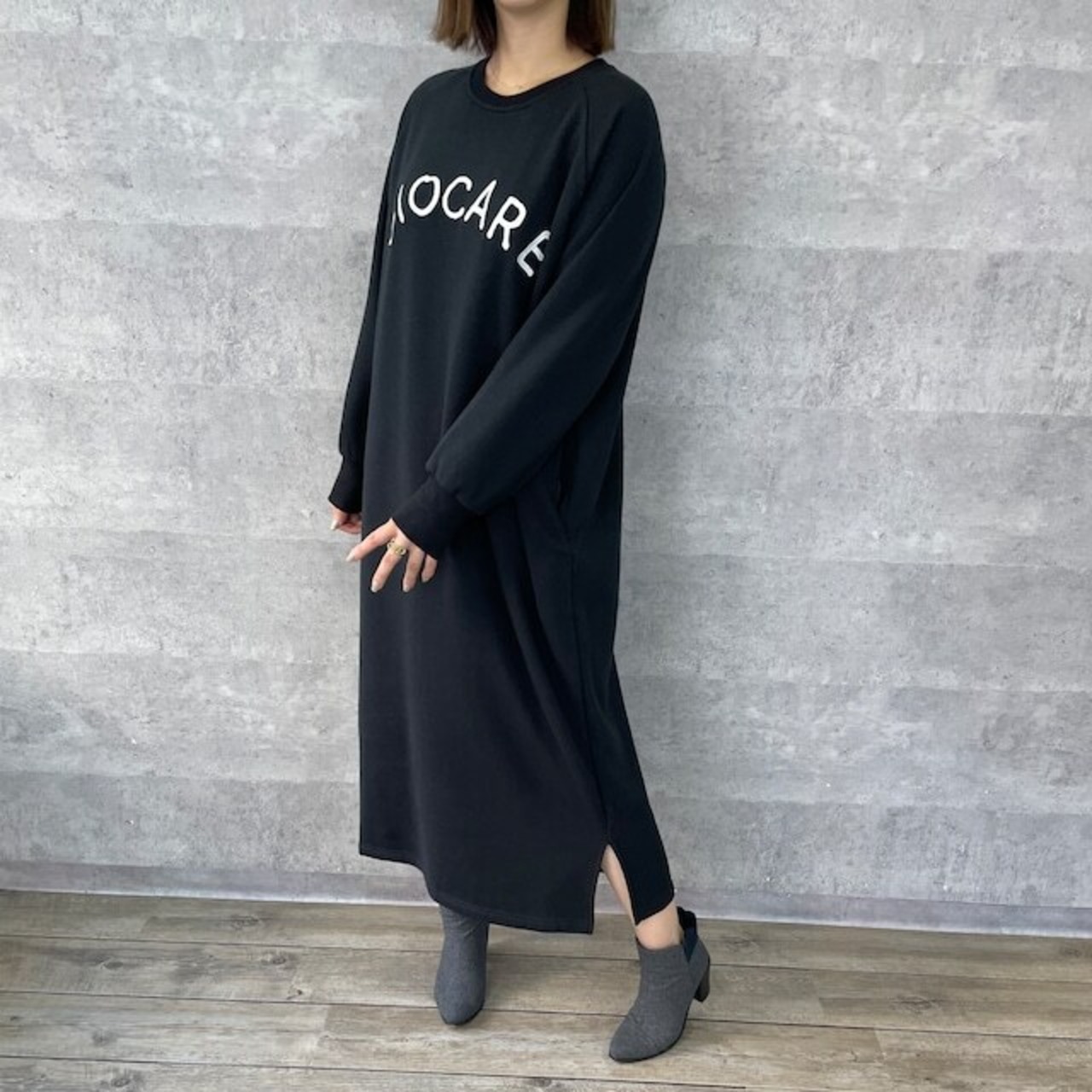 毛布のようなふんわり温かい裏起毛が特徴のワンピース。