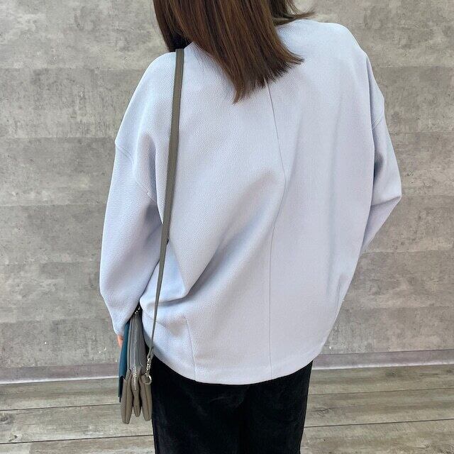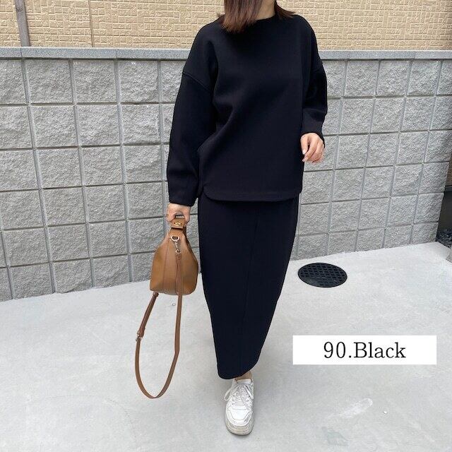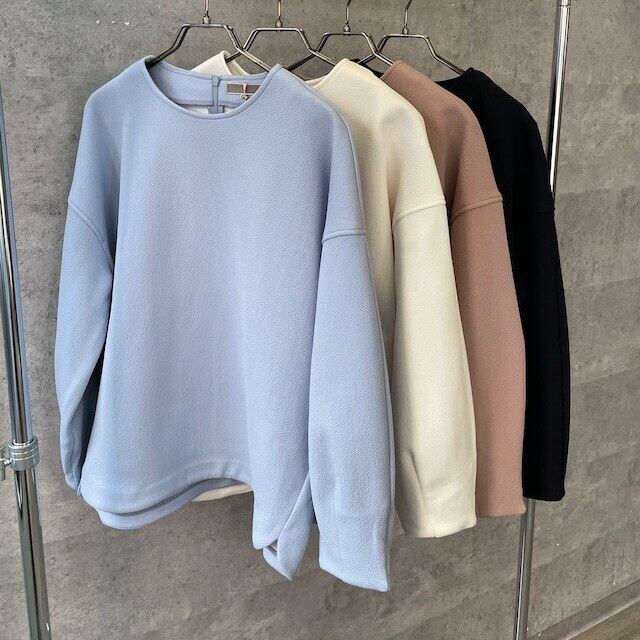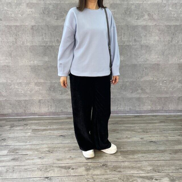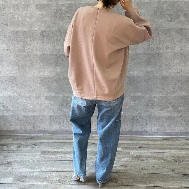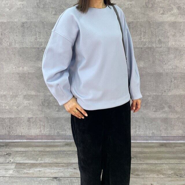 表面は布帛見えする素材感で、裏面はしっかりと厚みのある起毛のカットソーなので真冬でも1枚で温かく、上品見えしながら着ぶくれすることなく着用して頂けます。