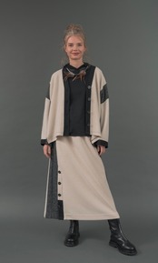 ニット系の素材なのでタッチの違うフレアーシャツJKも今っぽい着こなしが楽しめます。