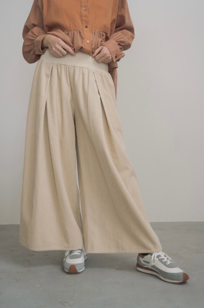 akane売れ筋の太コーデュロイ素材は光沢感とソフトな素材感で着心地抜群、今年は新しいワイドパンツを作りました。