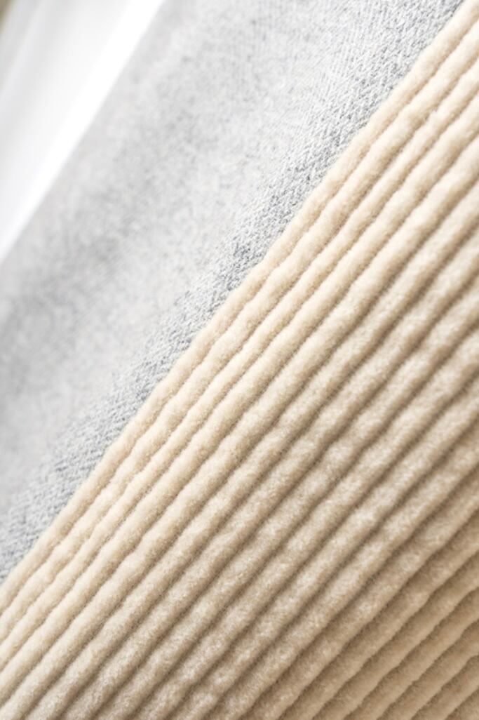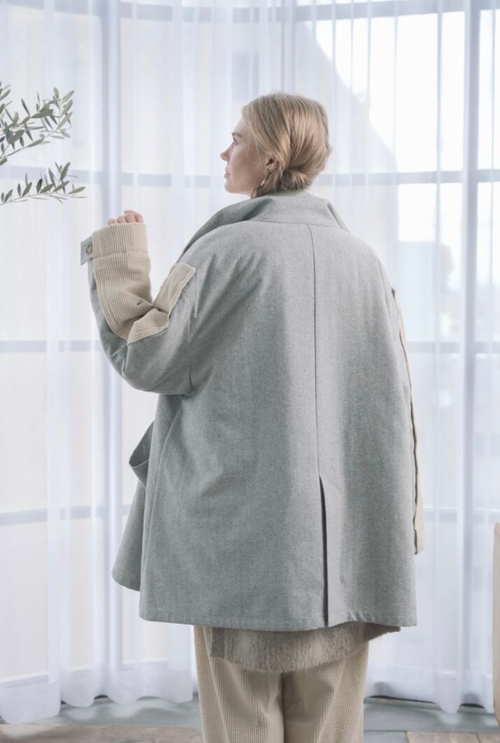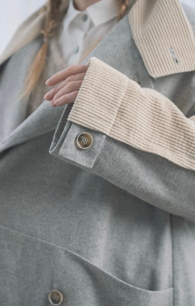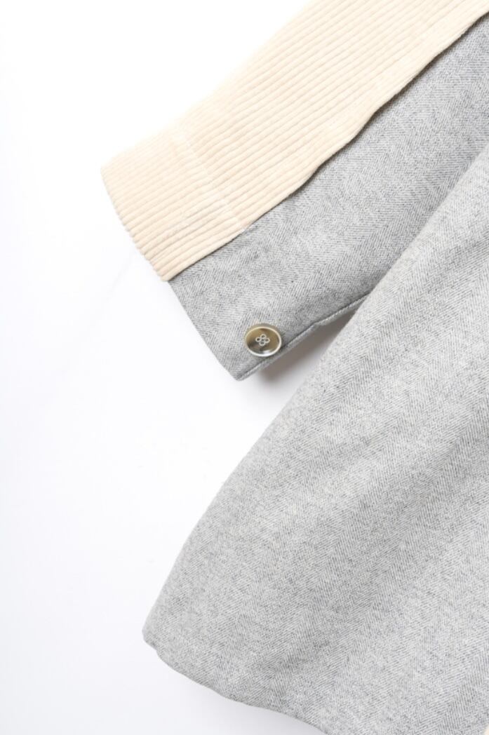 生地バイオ加工したツイードとコーデュロイ素材の配色異素材ジャケット。