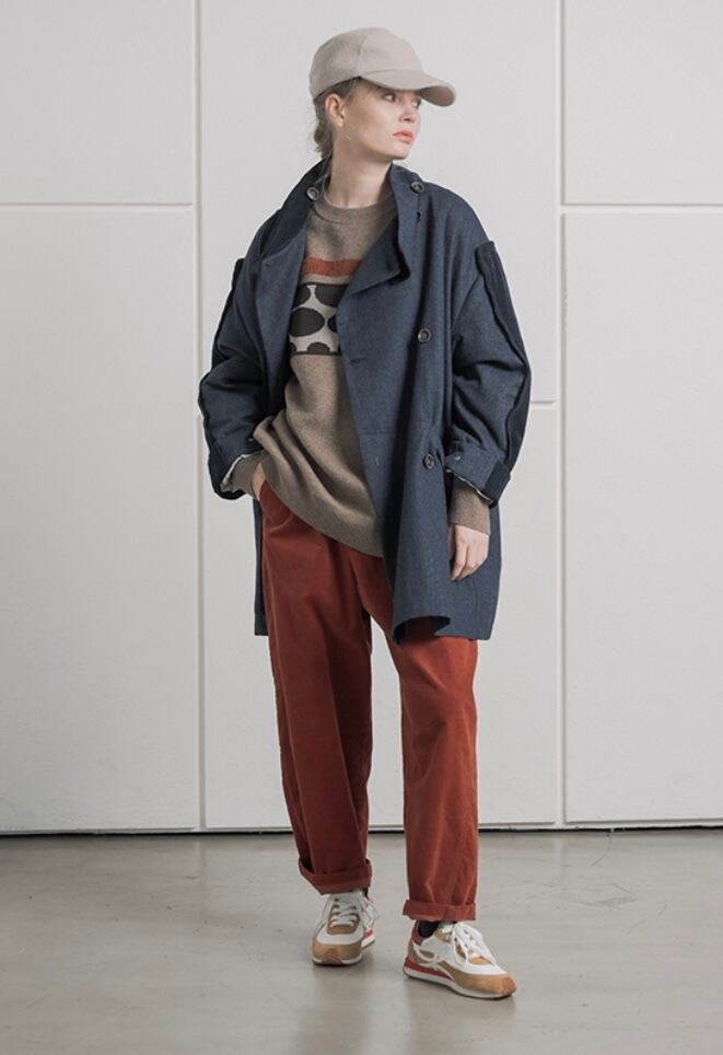 ゆったりした分量感、袖回りも大きいので下に着るものを選びません。