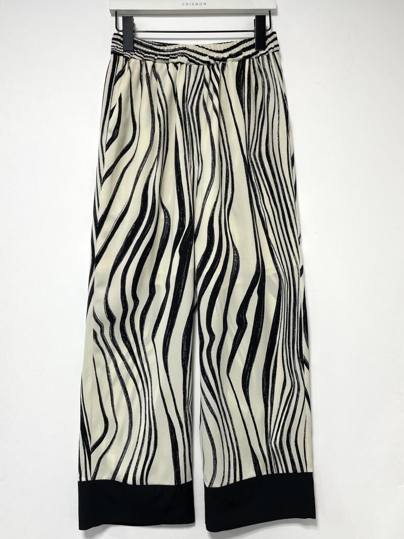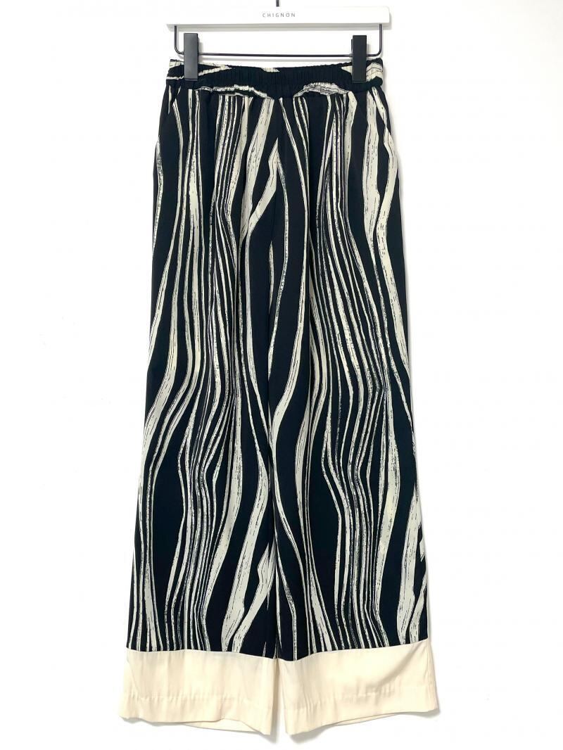裾切替の異素材配色使いでモードな印象になり、定番の柄パンツとは違う遊びのある1枚になります。