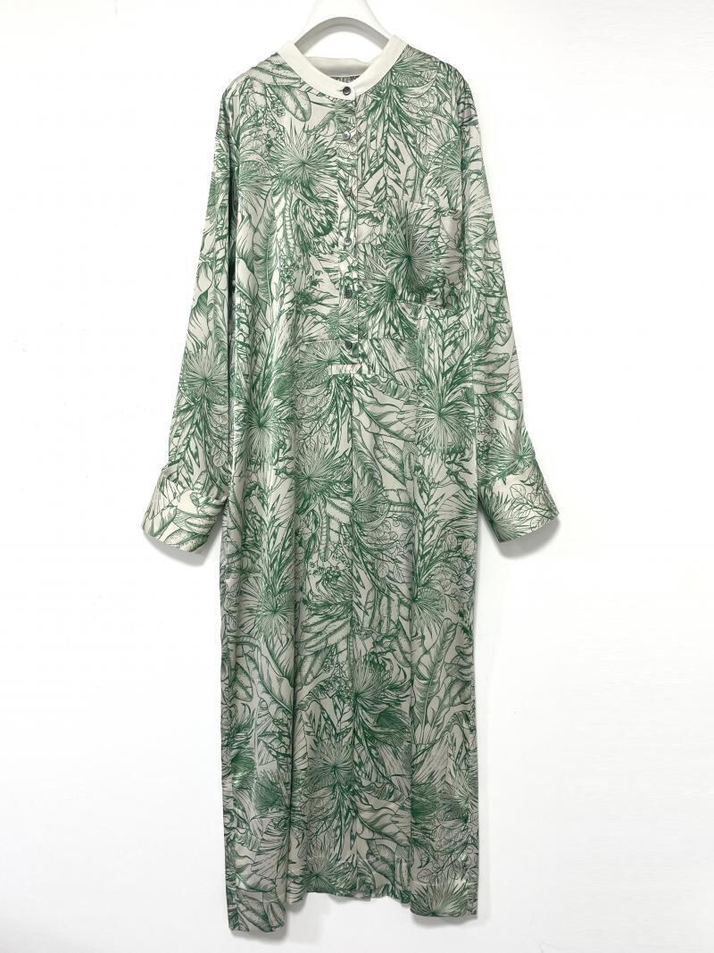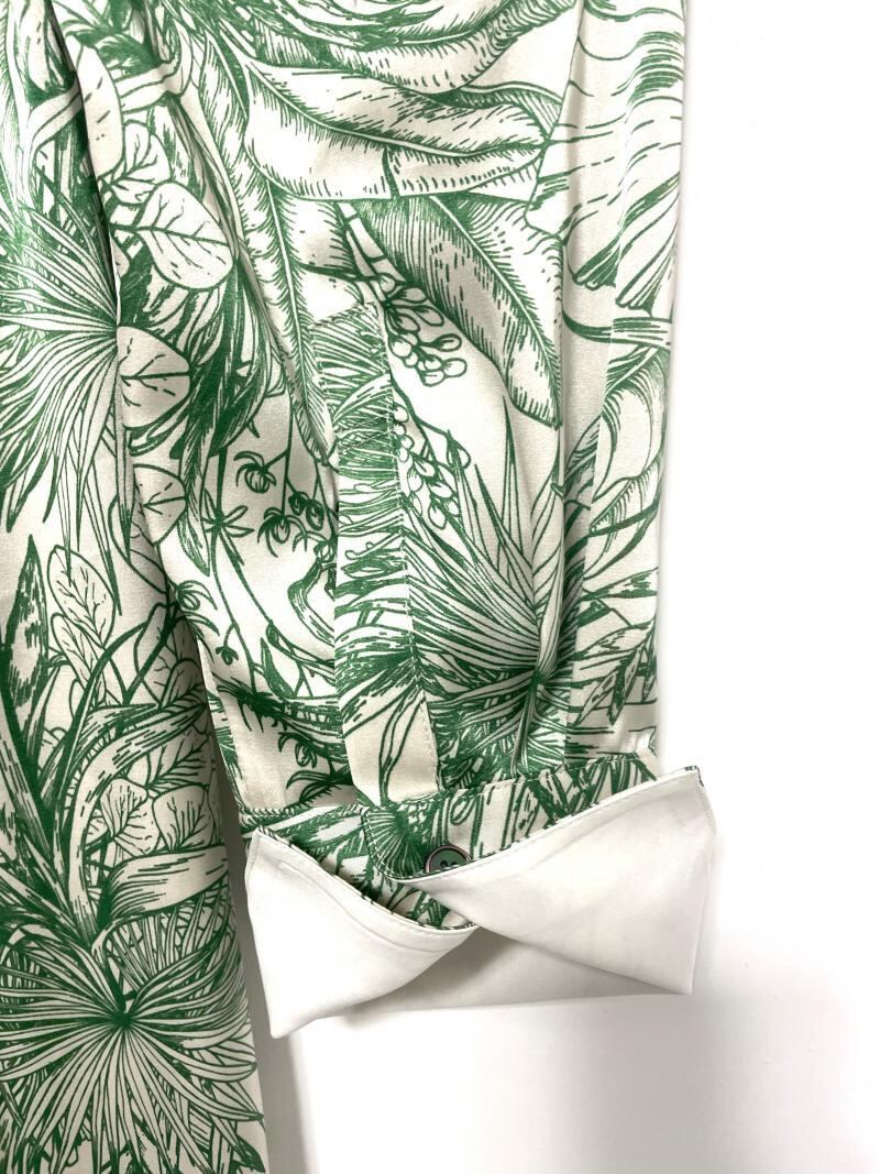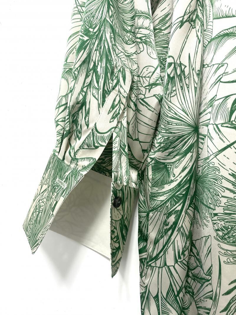 カラーリングがポイントの単色リーフ柄シャツOPになります。