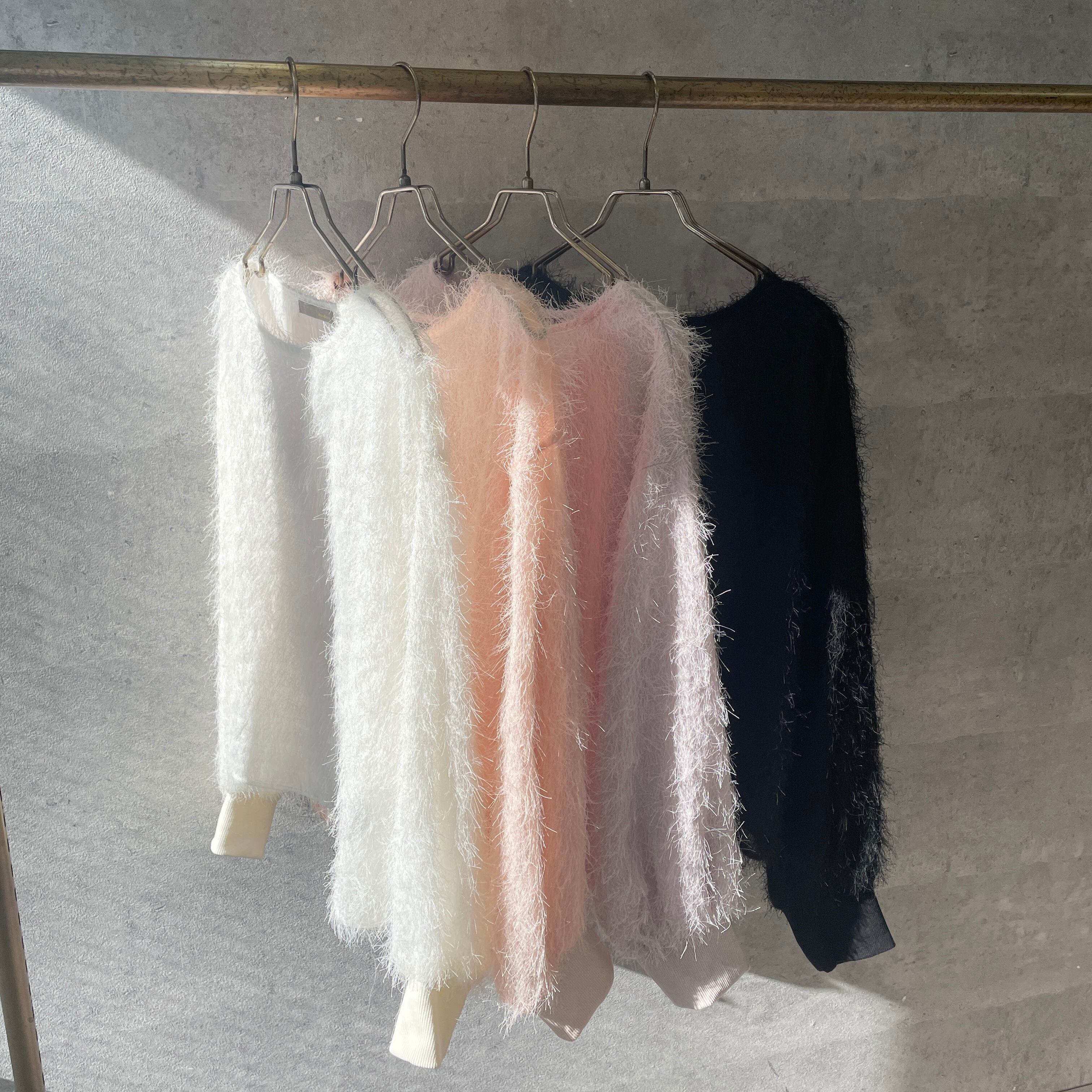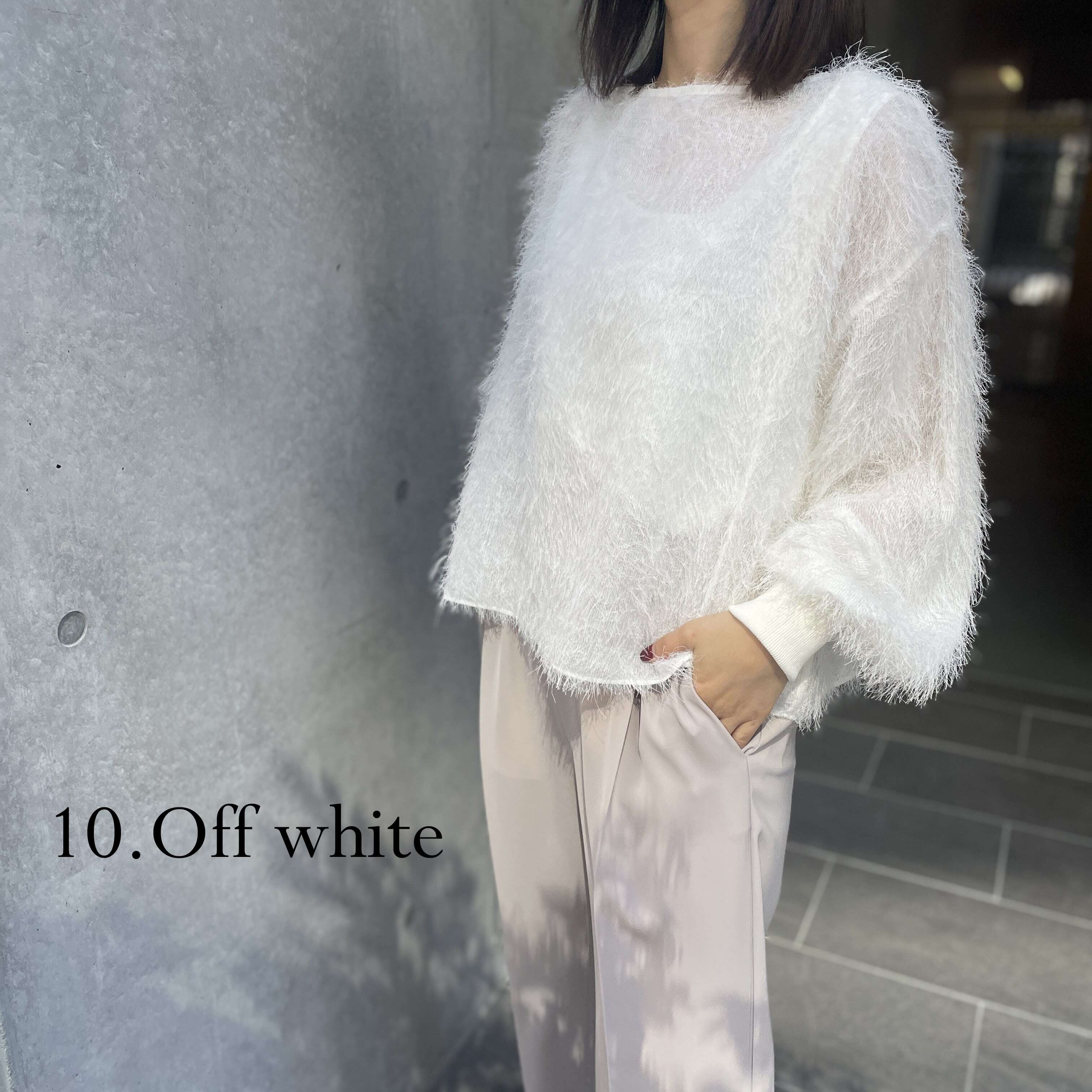 エアリーなシャギー素材が軽やかで、華やかな印象のトップス。