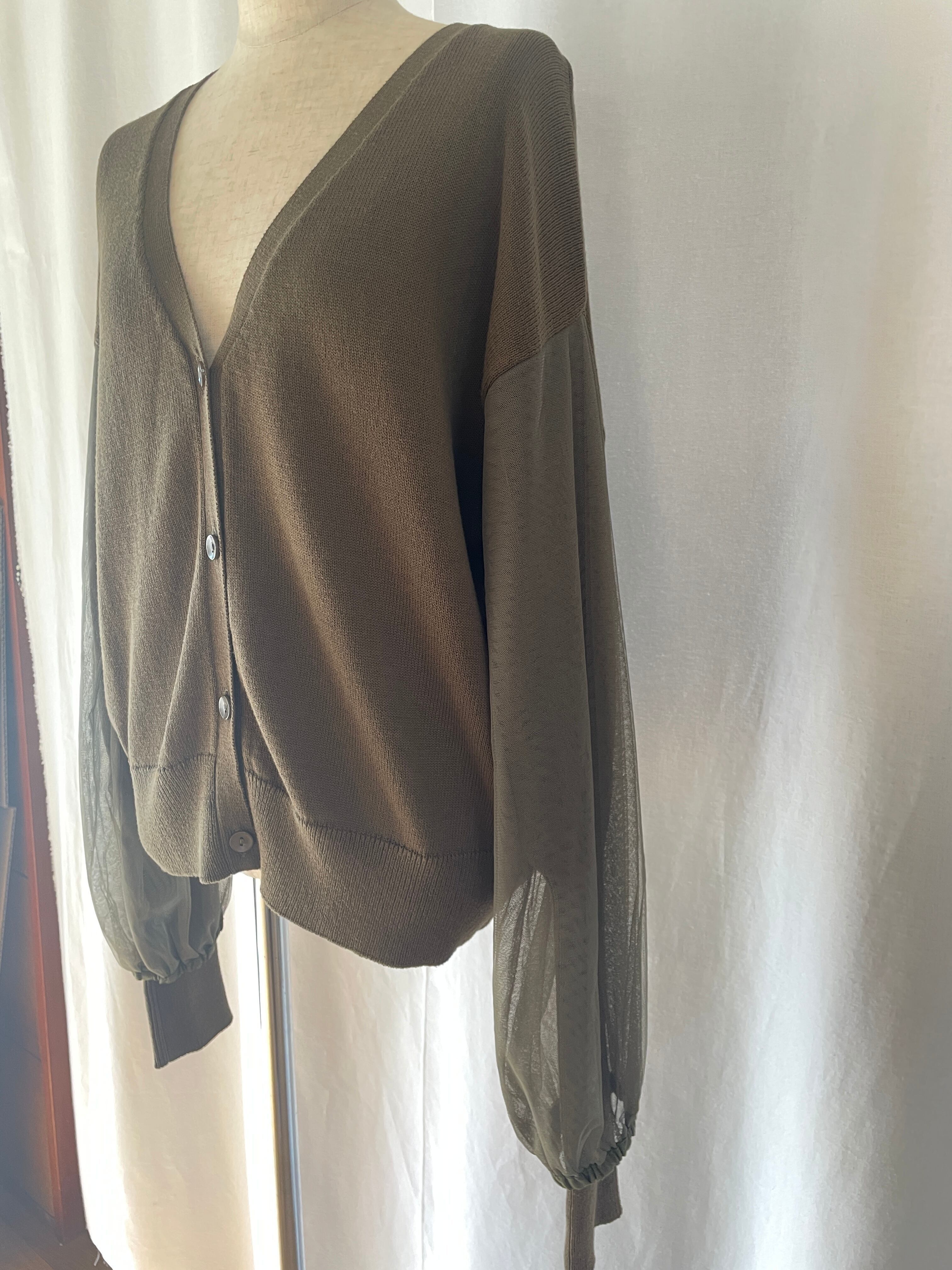 袖はニット袖の上にチュールが被さっており、袖口をゴムにしているので、チュールをたくしあげて着ることも可能。