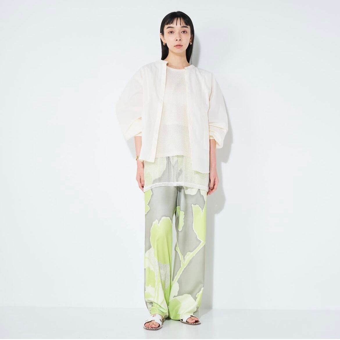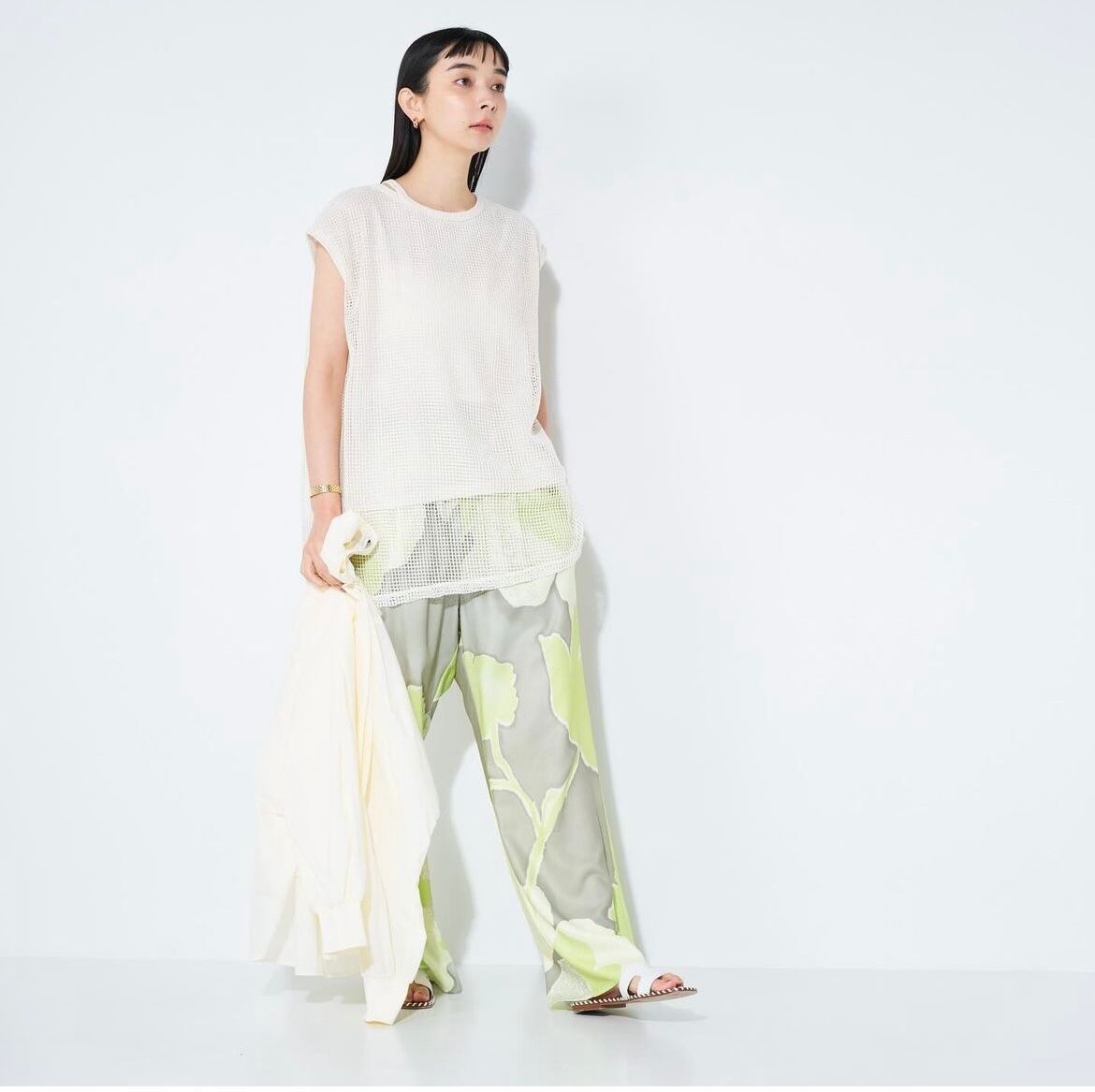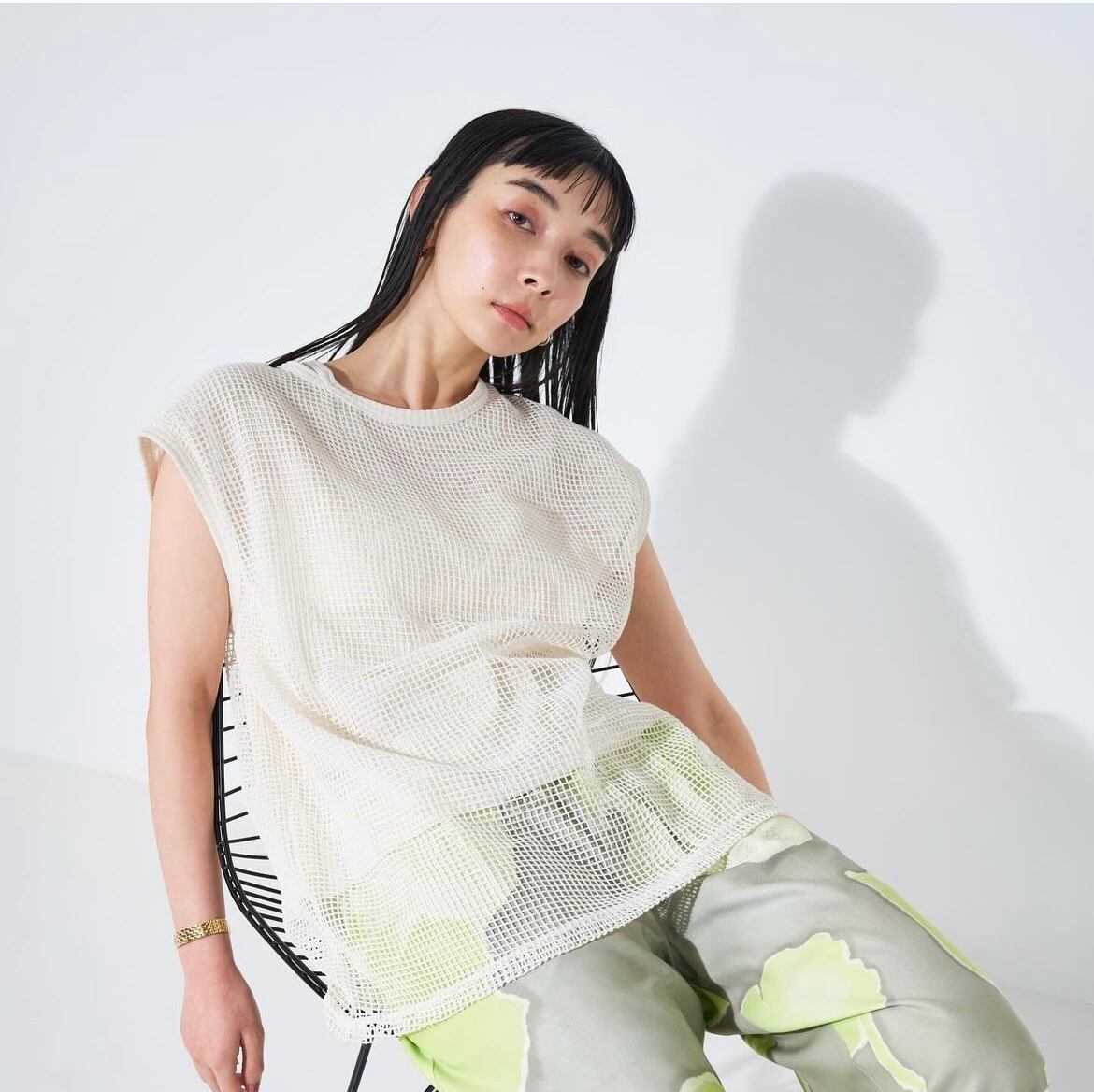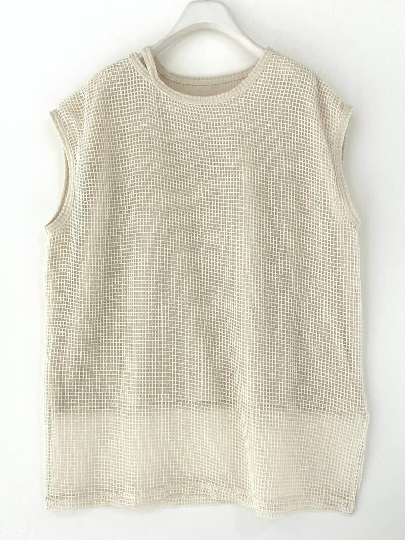 メッシュ1枚ではなく、カットソーを内側に入れた2枚仕立てなので、透けすぎずご着用いただけます。