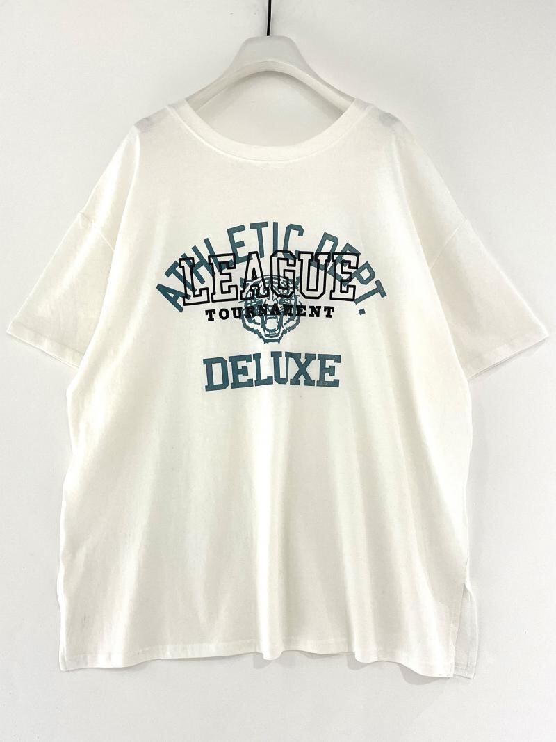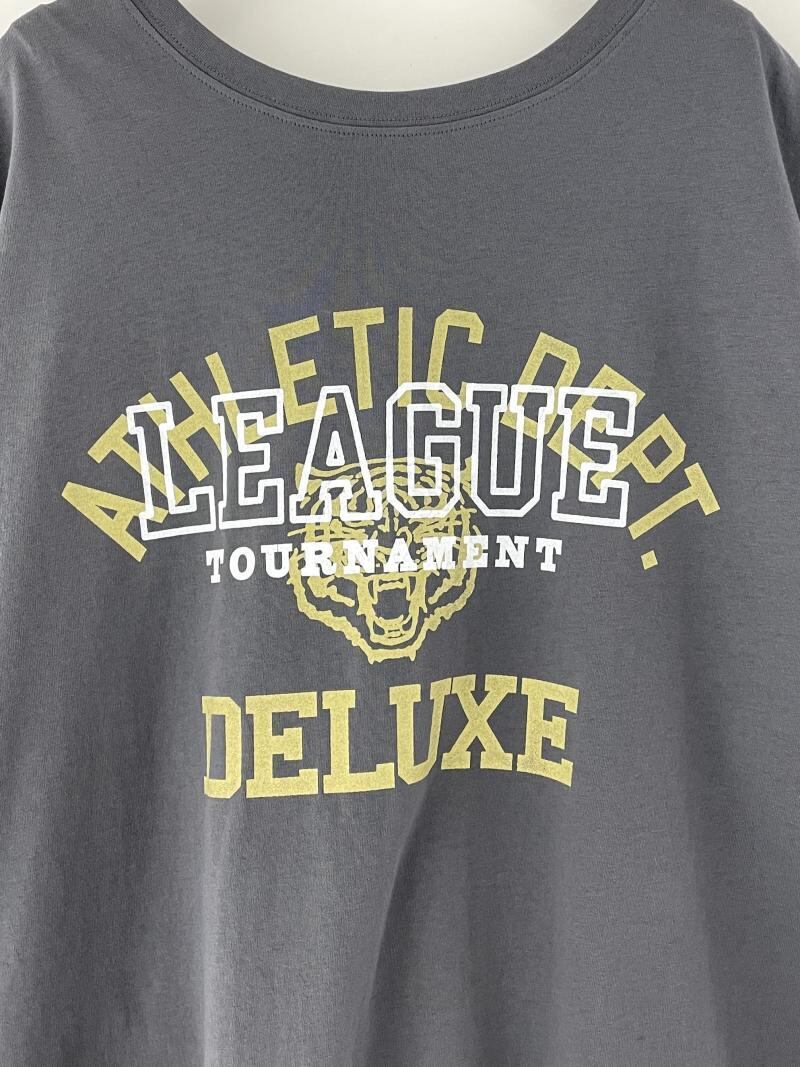 2パターンのロゴを重ねてプリントし、リメイク風なデザインがポイントです。