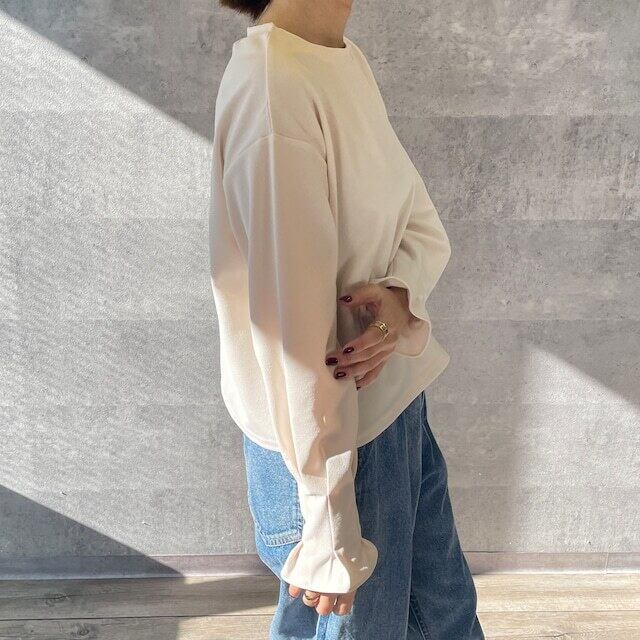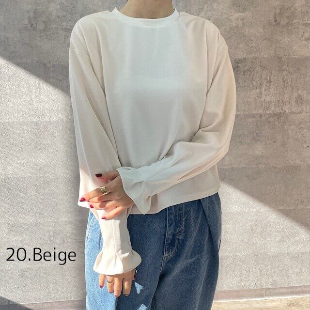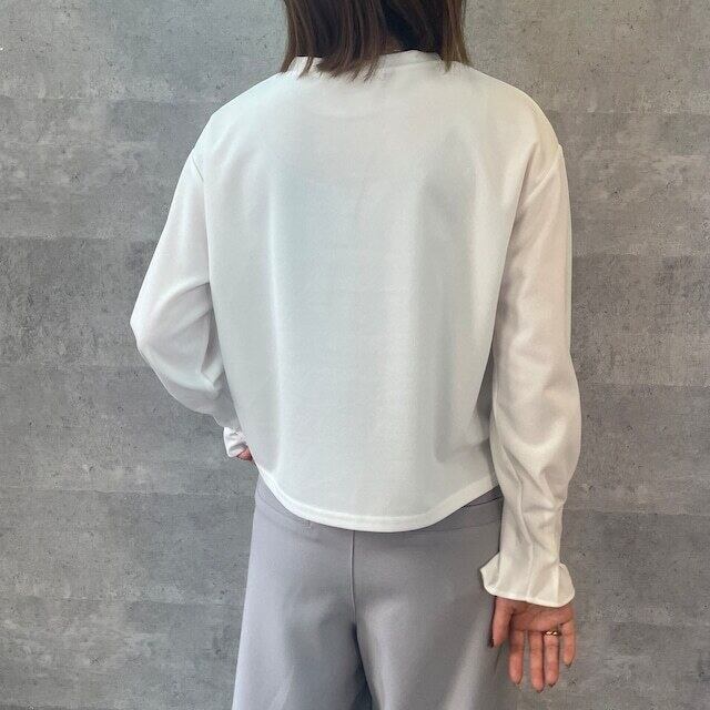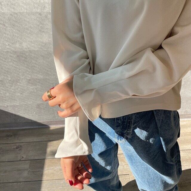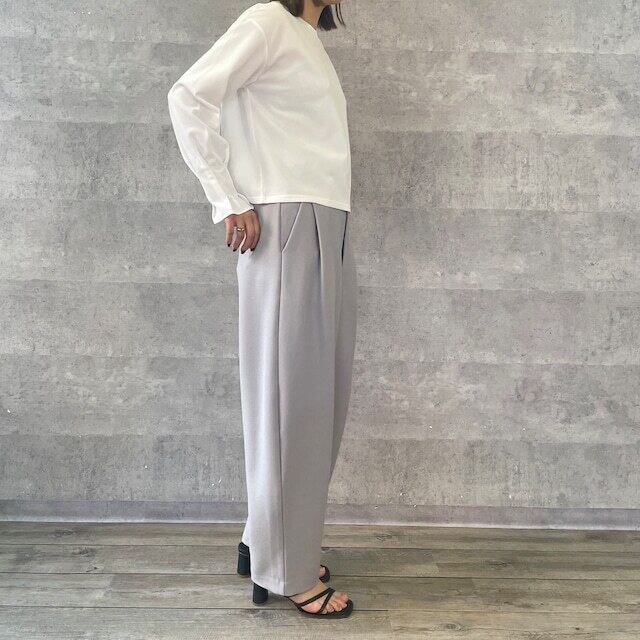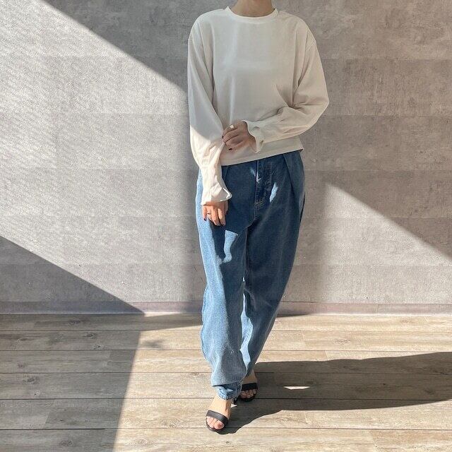 ショート丈や、袖口のタックデザインなど、カジュアルになりすぎないスタイリングに仕上がります。