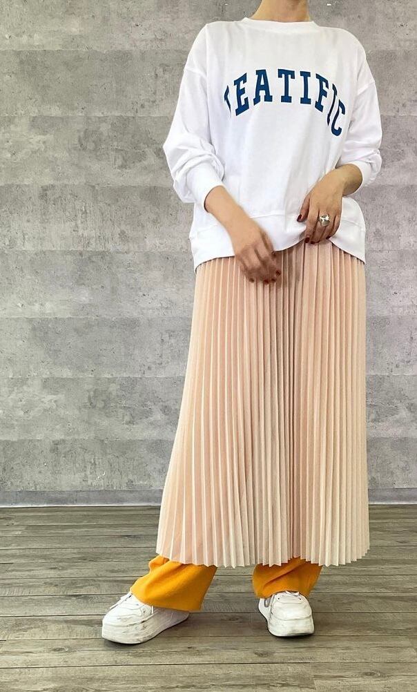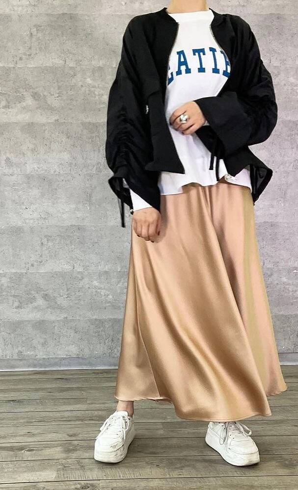サテン生地のペチスカートが別々にお使い頂け、幅広い着こなしが叶うスカートです♪