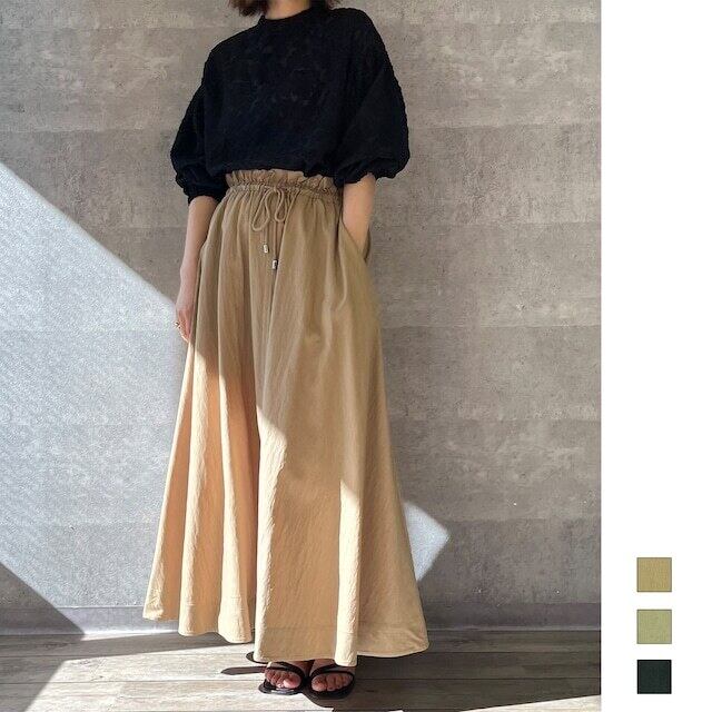 ウエストゴムのノーストレスの履き心地ながら、サマになる一枚。
