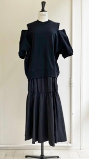 1枚で簡単にコーディネートが完成する異素材ドッキングワンピース。