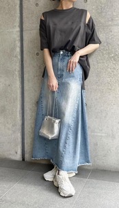 オフショルダー風ロングTシャツ