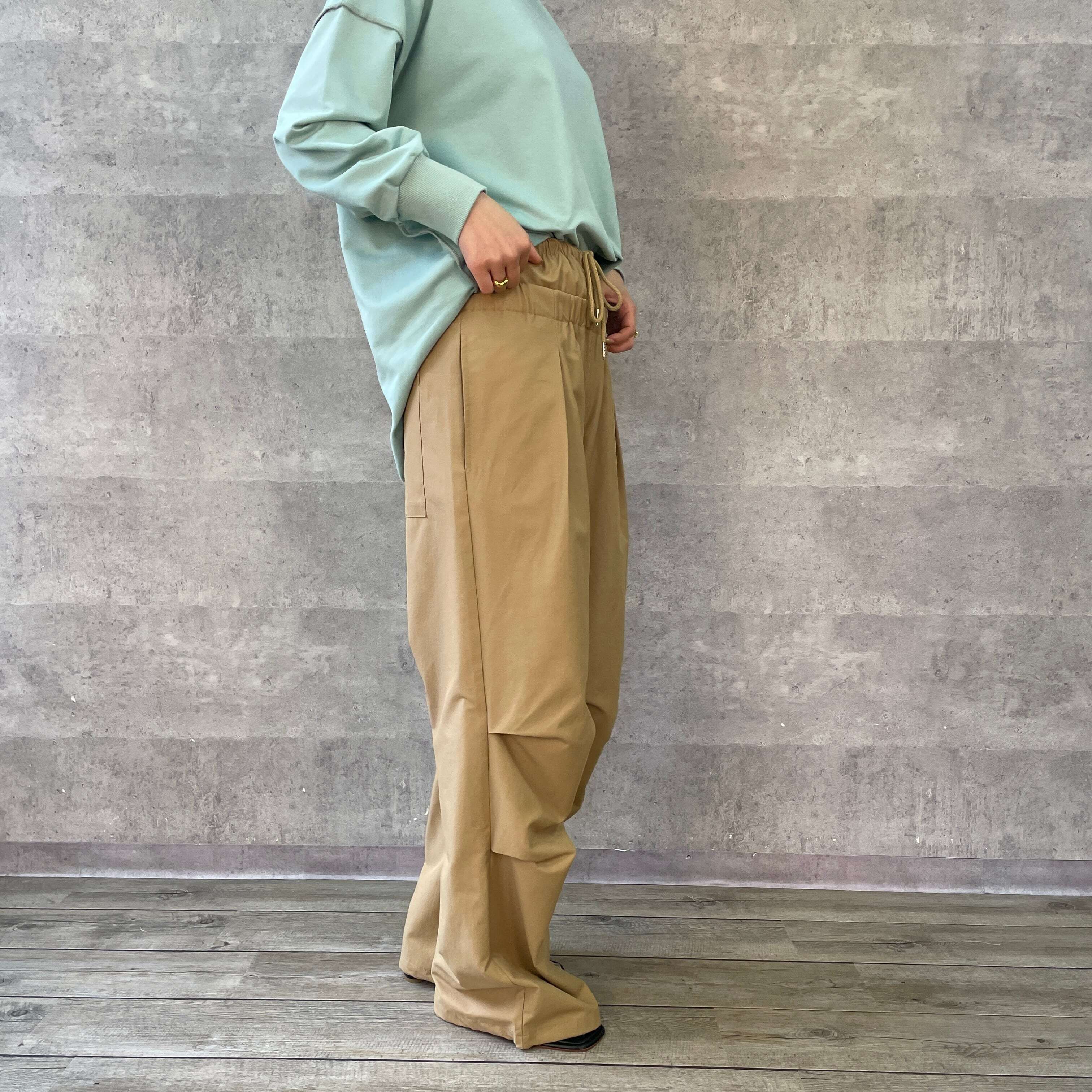 つや感のあるナイロン混の綿素材が、カジュアルすぎず、幅広く合わせやすいです。