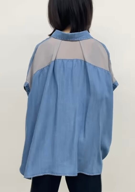 テンセルデニム×シフォンドッキングブラウス