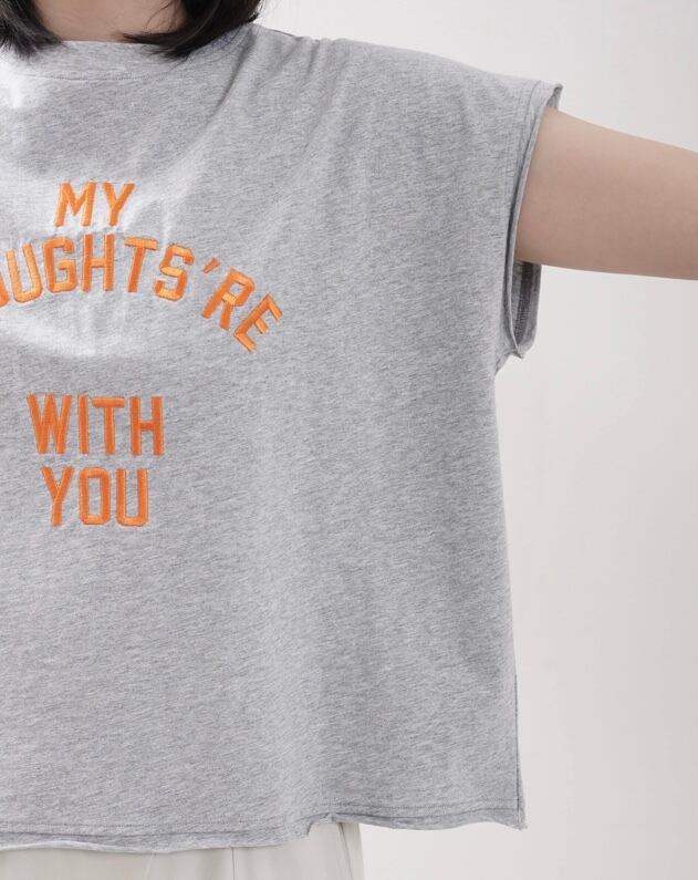 光沢感のある糸で立体刺繍を施しカジュアルながらも洗練されたTシャツに仕上げました。