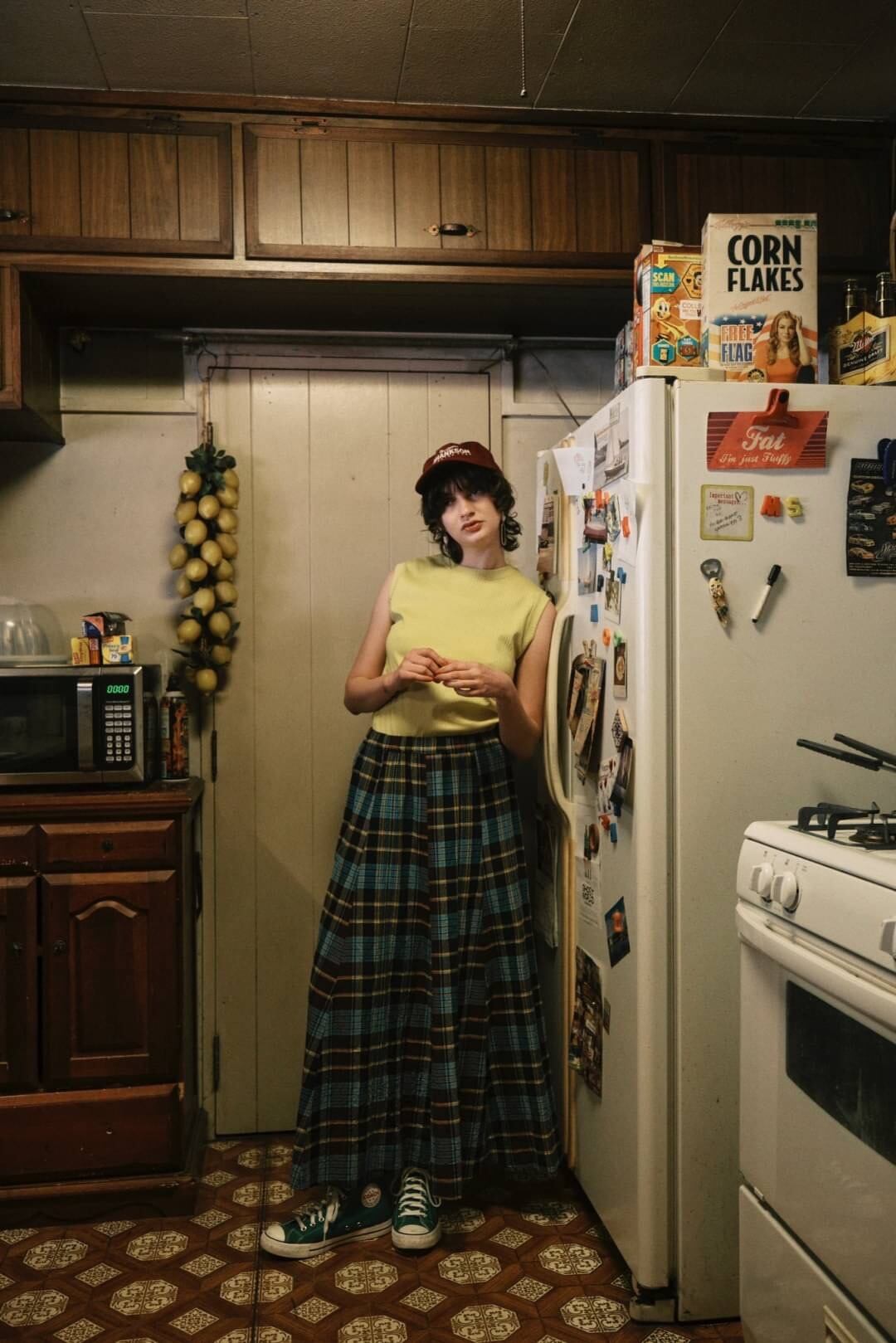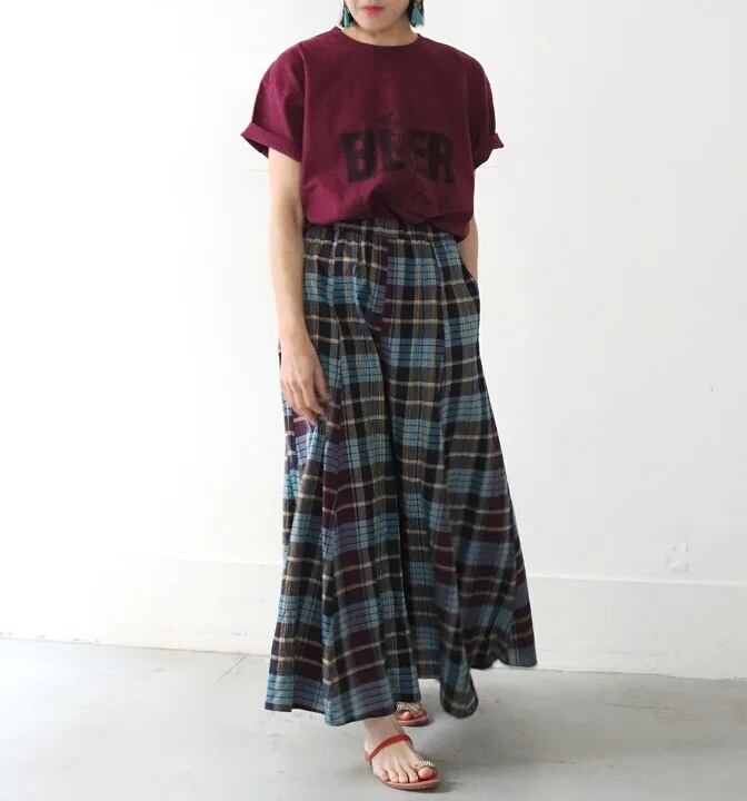 チェック柄の中のカラーとトップスのカラーをまとめてコーデのがオススメです♪