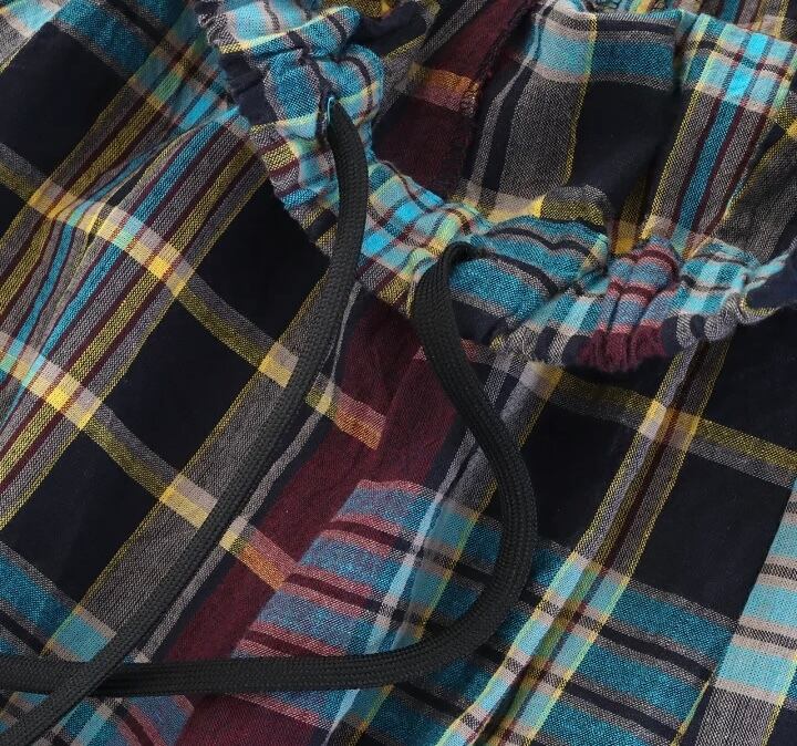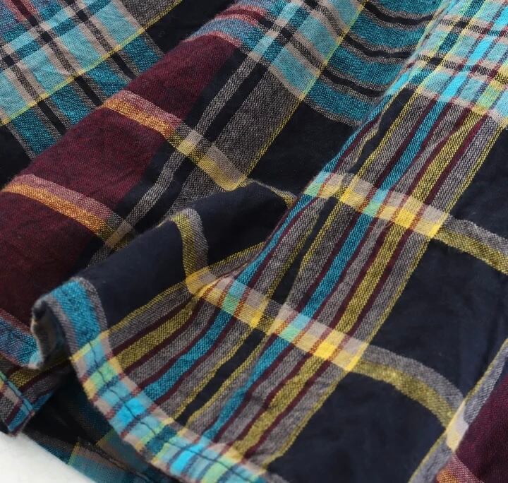 インド特有の粗野感のあるコットンの平織りで、先染めで色数の多いチェック柄です。