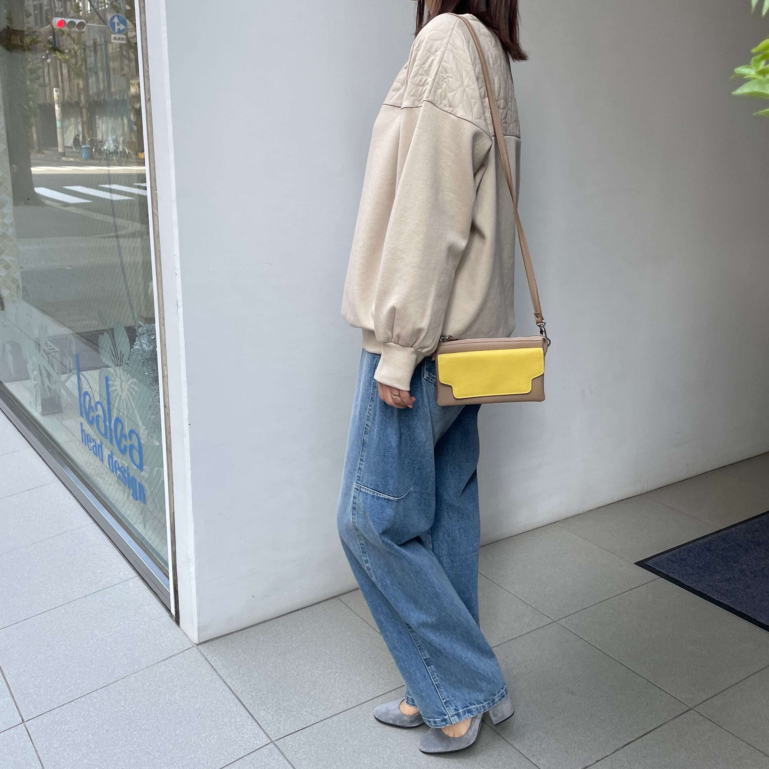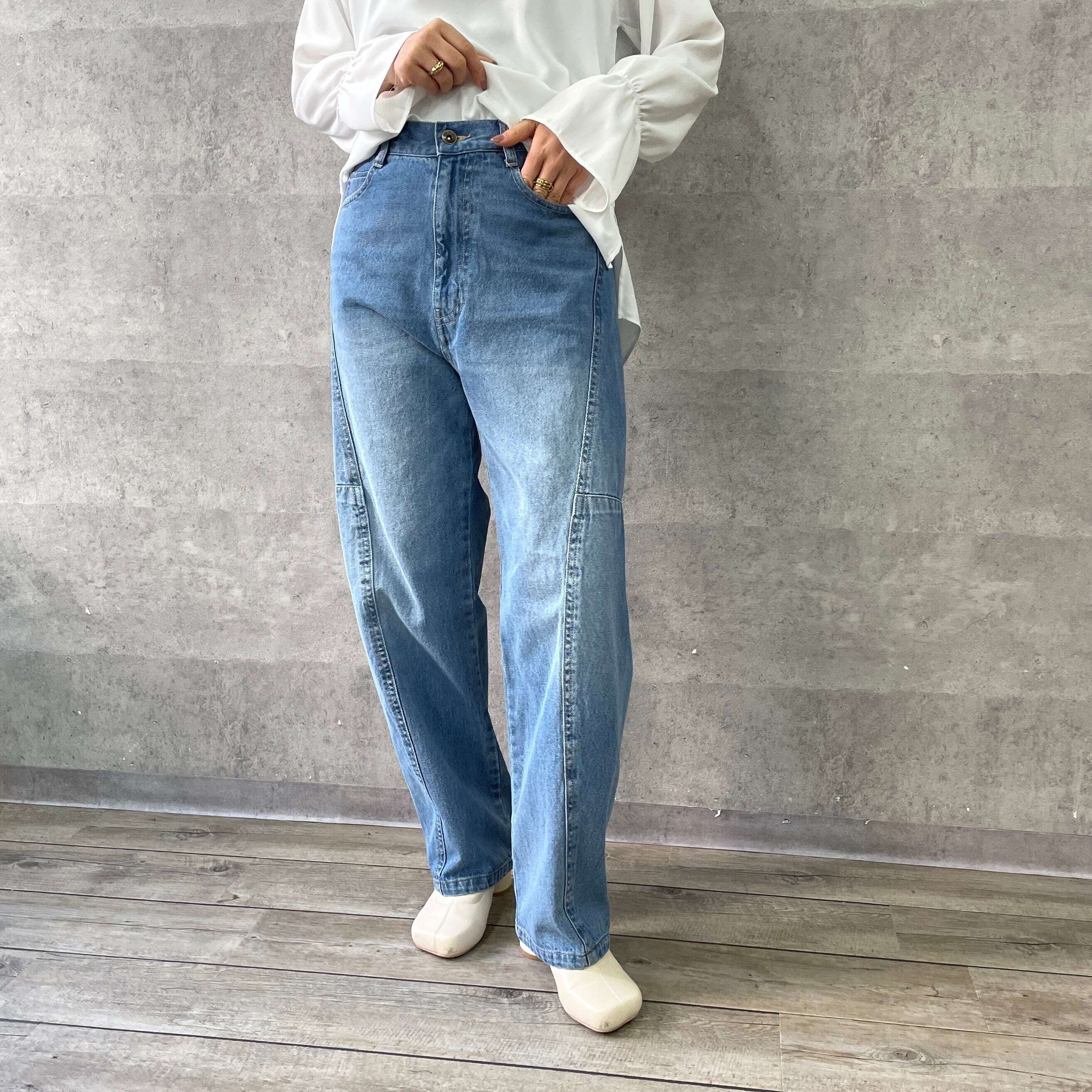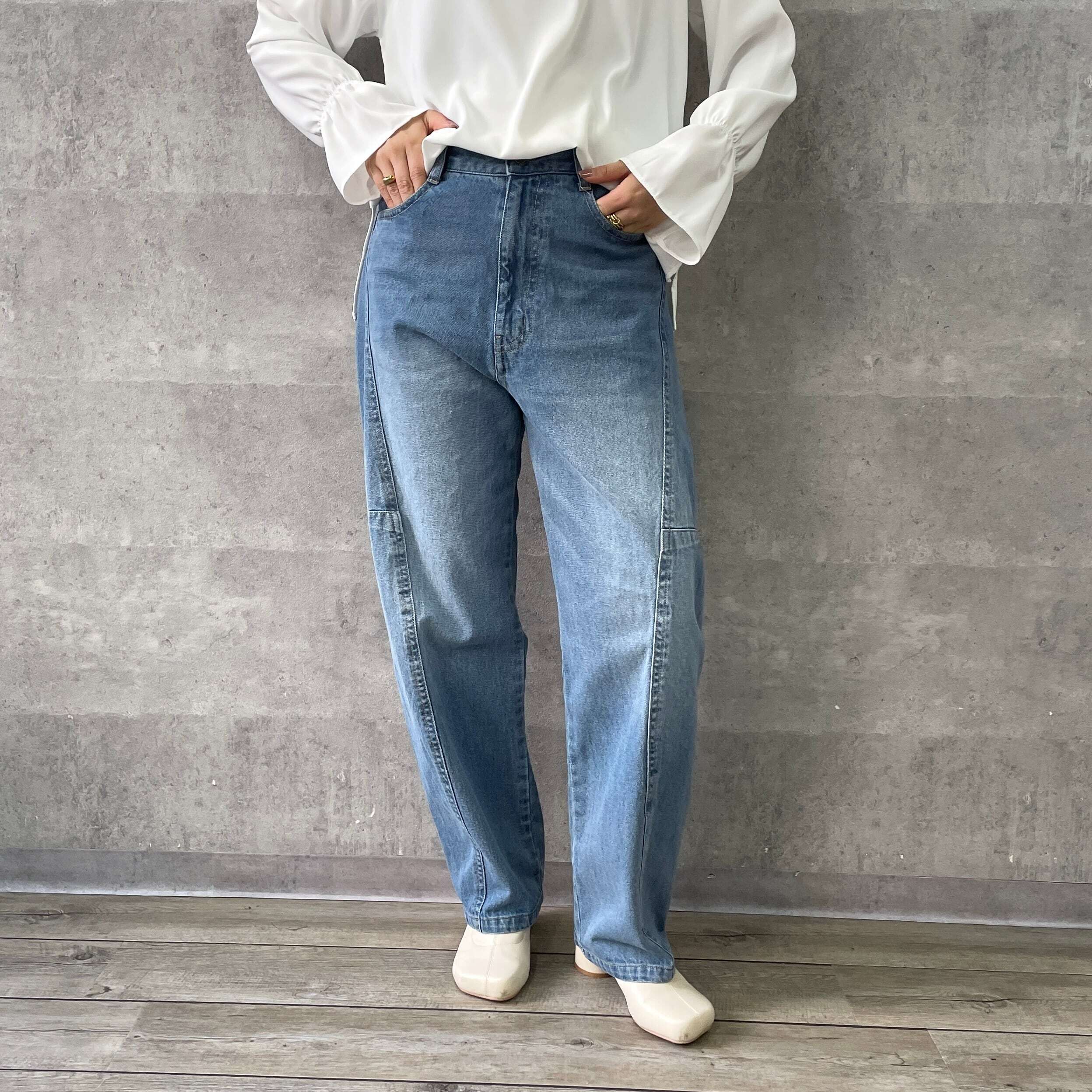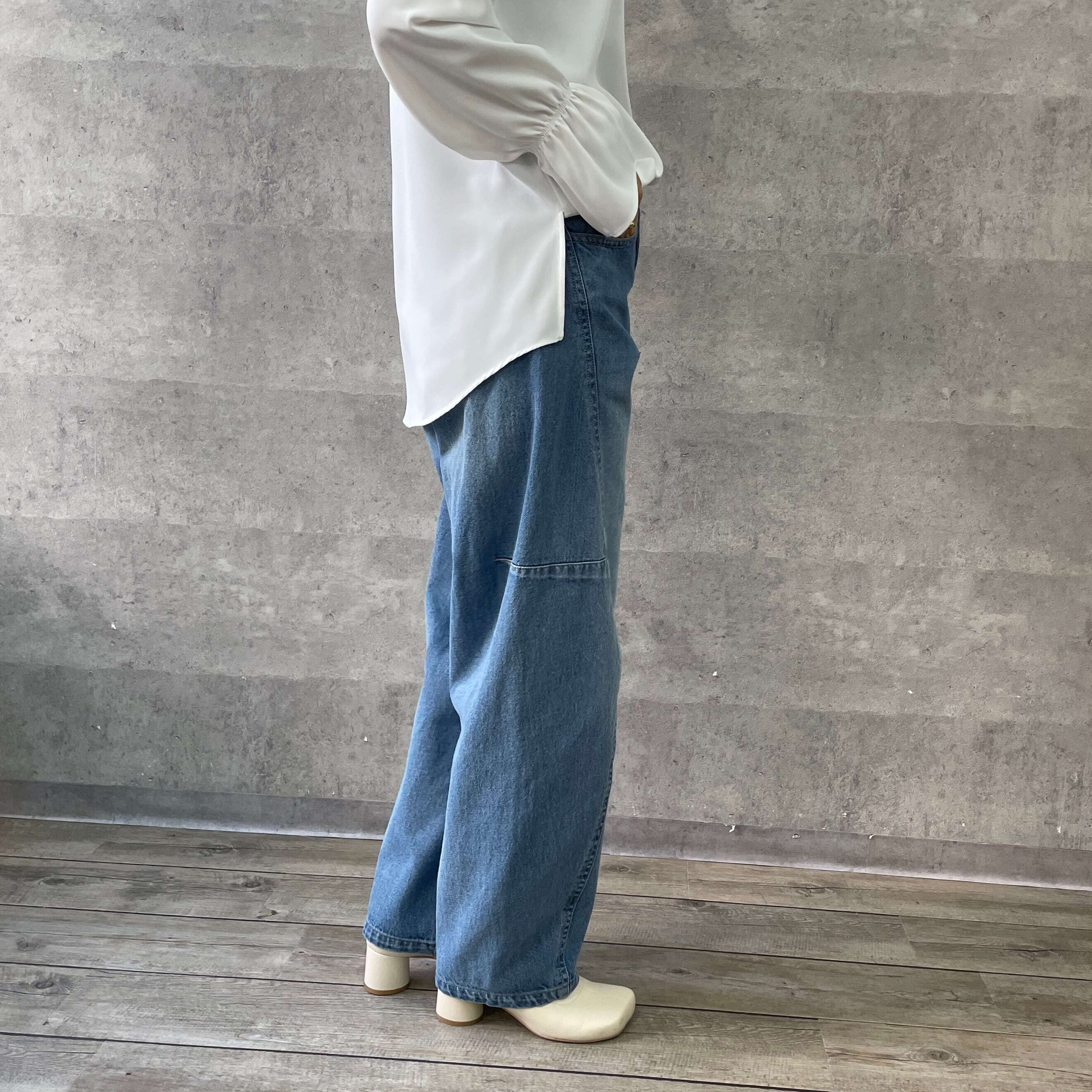 切り替えコクーンデニムパンツ