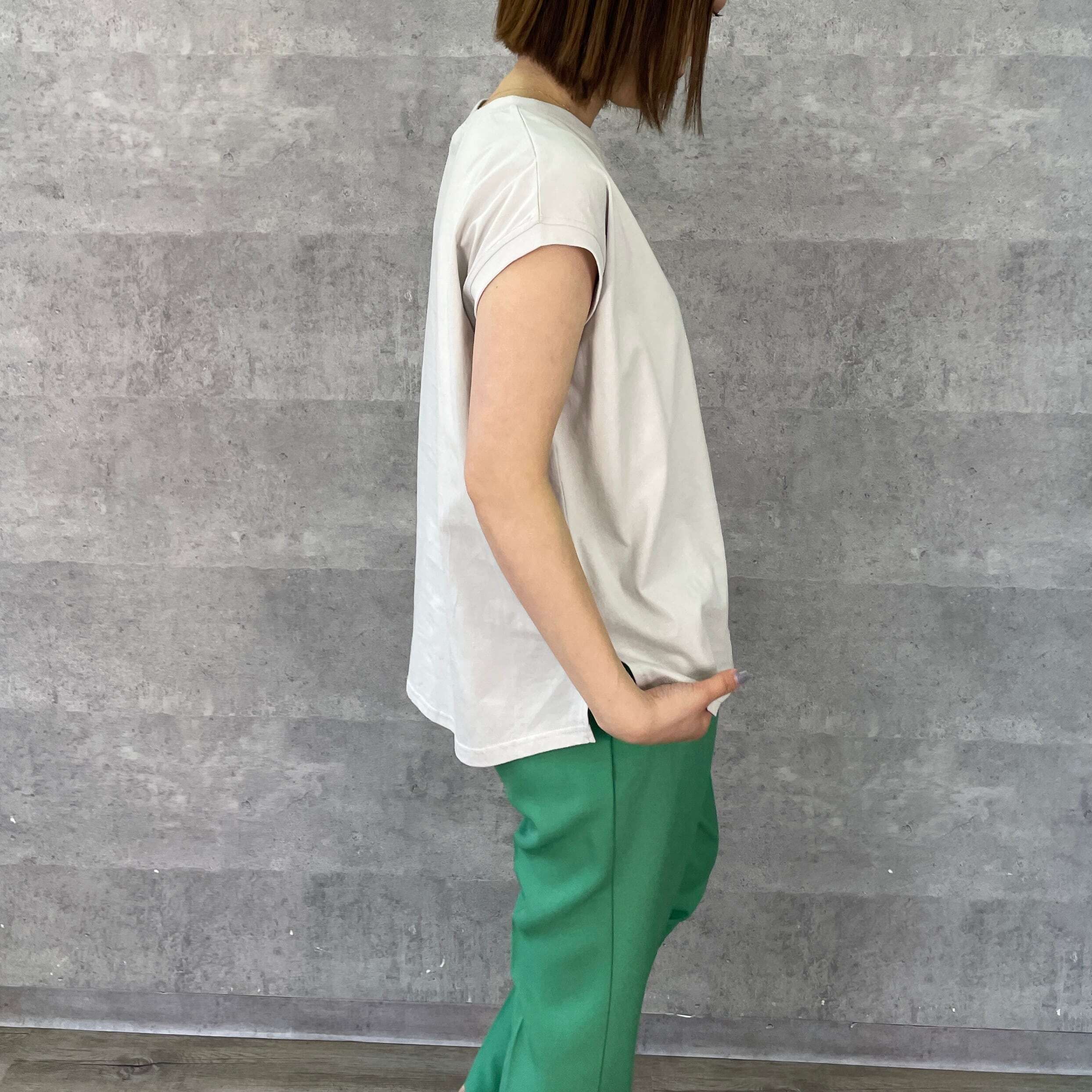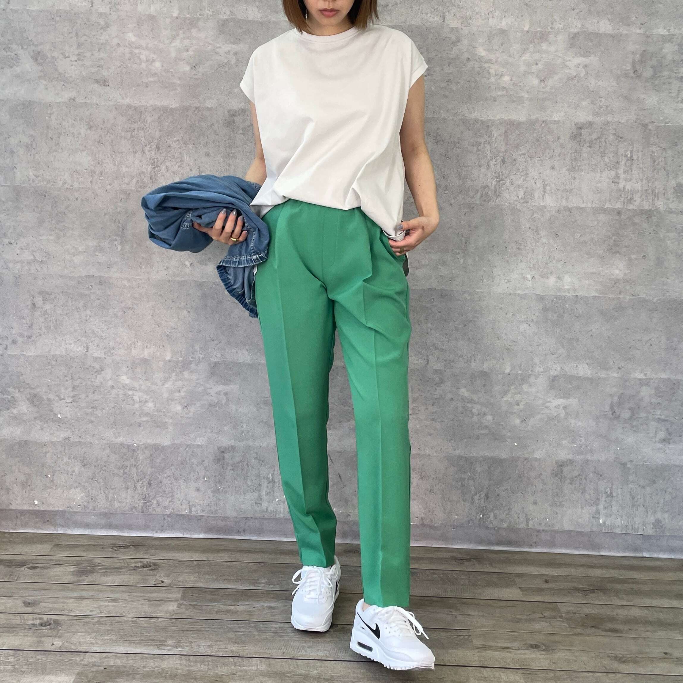 パンツにもスカートにも合わせやすいデザインで、一枚持っていると重宝します。
