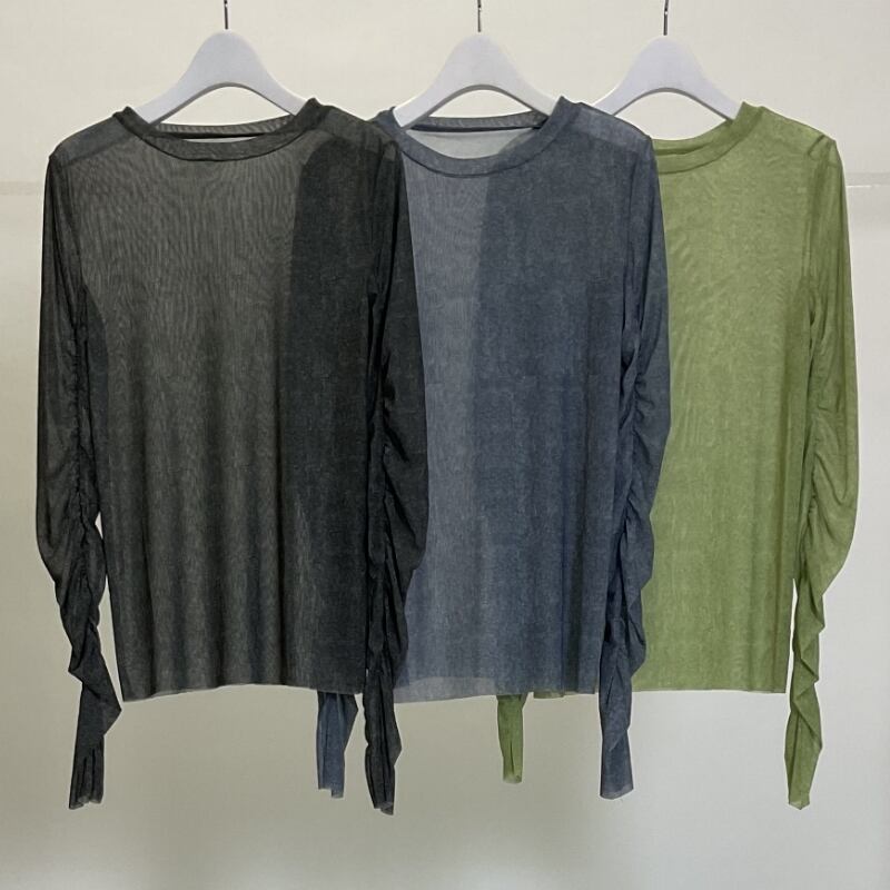 スリーブ部分にギャザーが施されたトレンド感のあるギャザープリントインナーです。