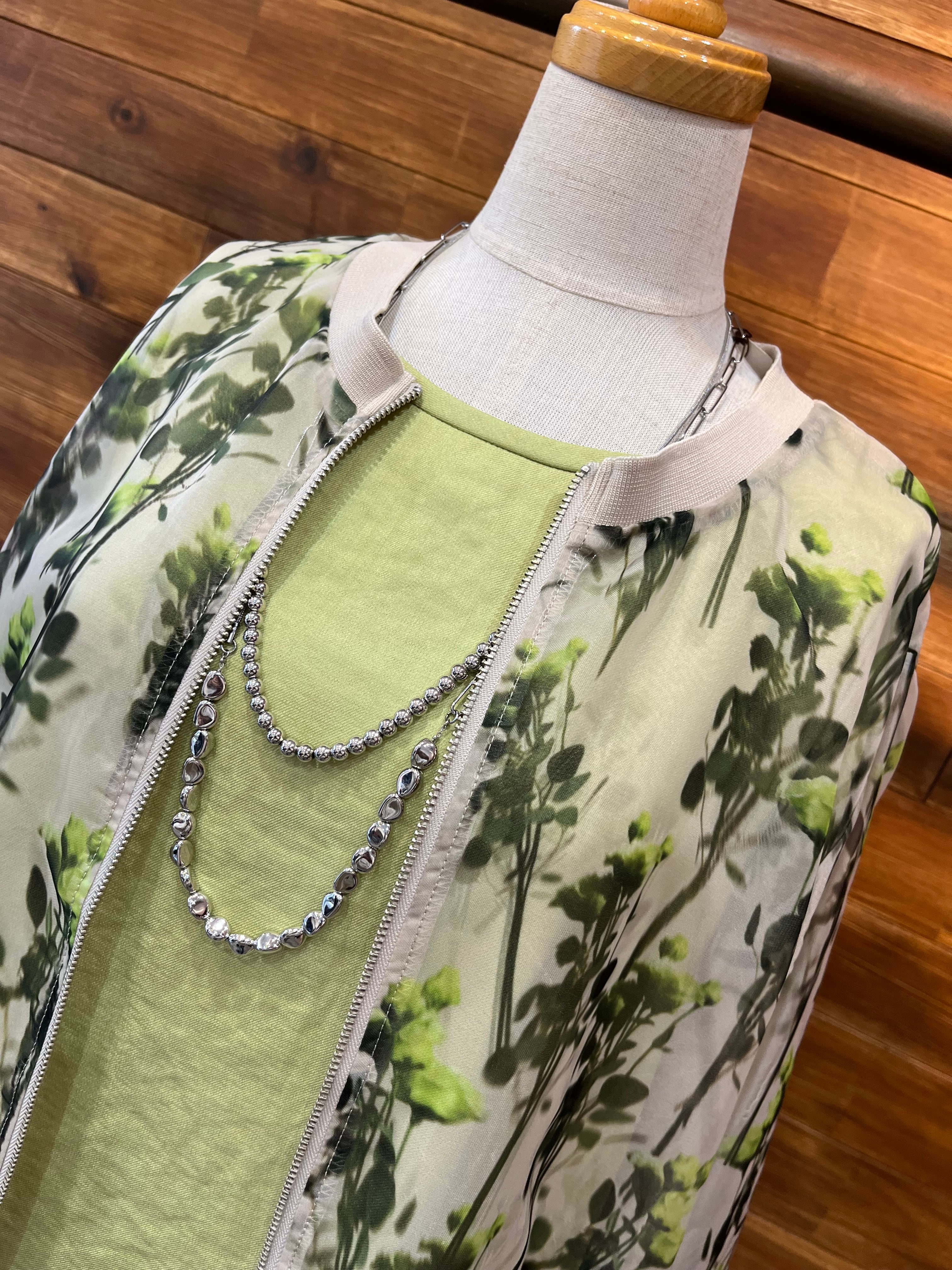 シアー素材を用いることでフェミニンな印象を与え、軽く使いやすいアイテムに仕上げました。