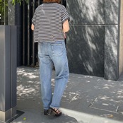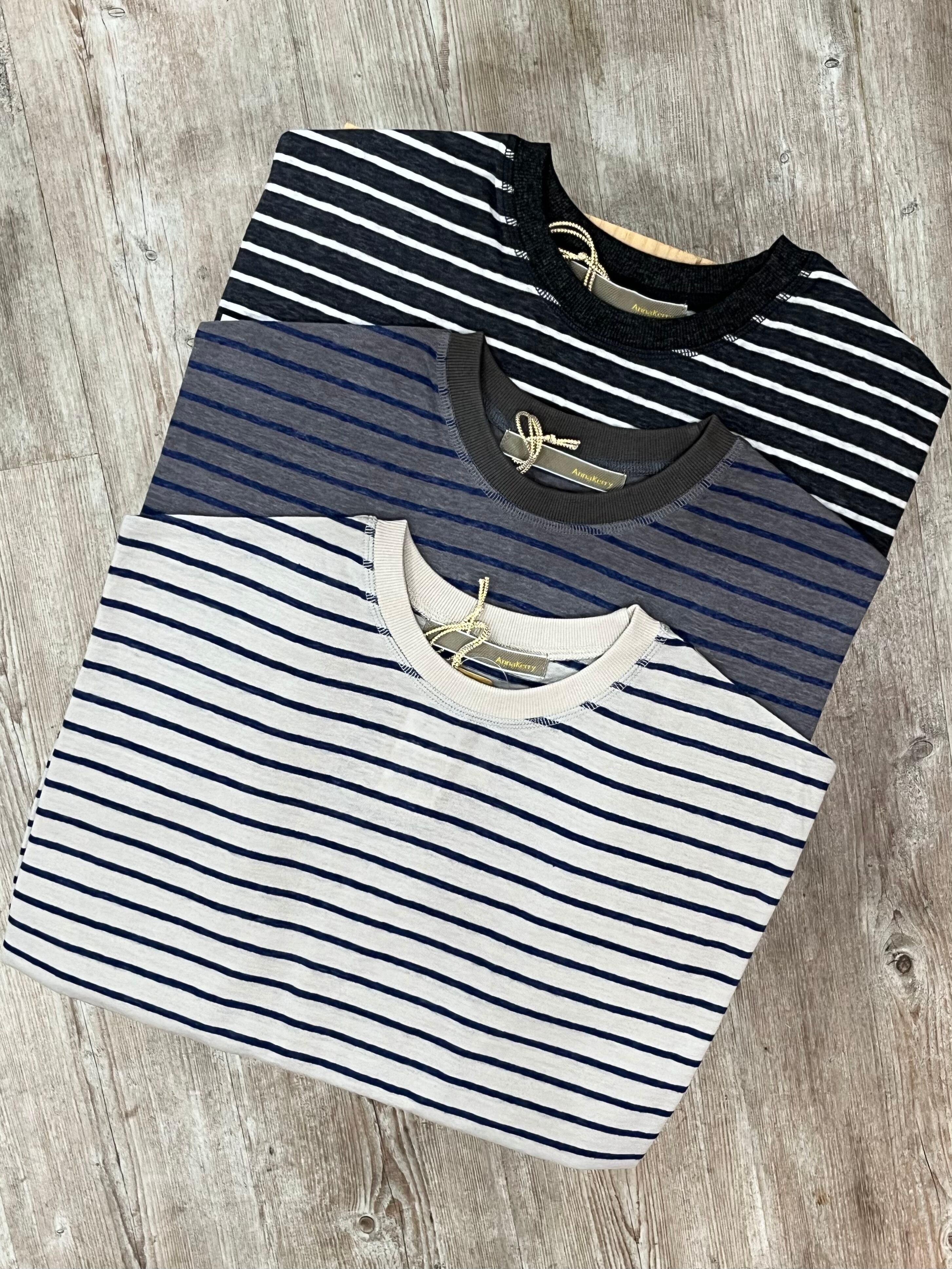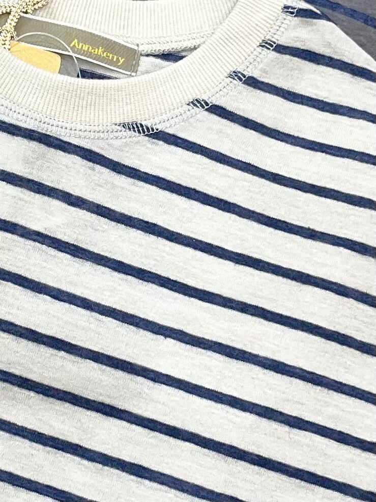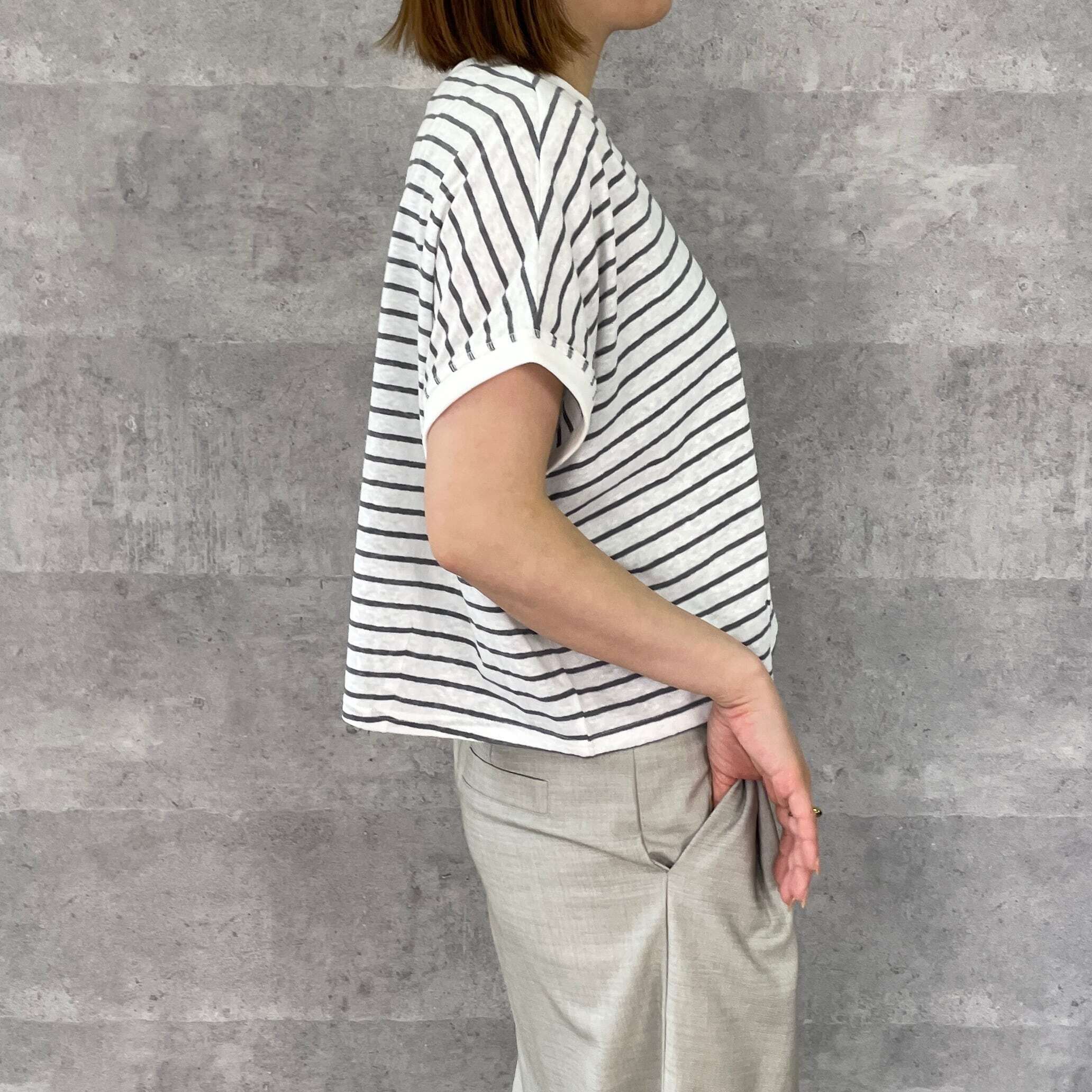 夏らしく、涼し気なボーダー柄と、ラフなサイジングがヘビーユース間違いなしの一枚。