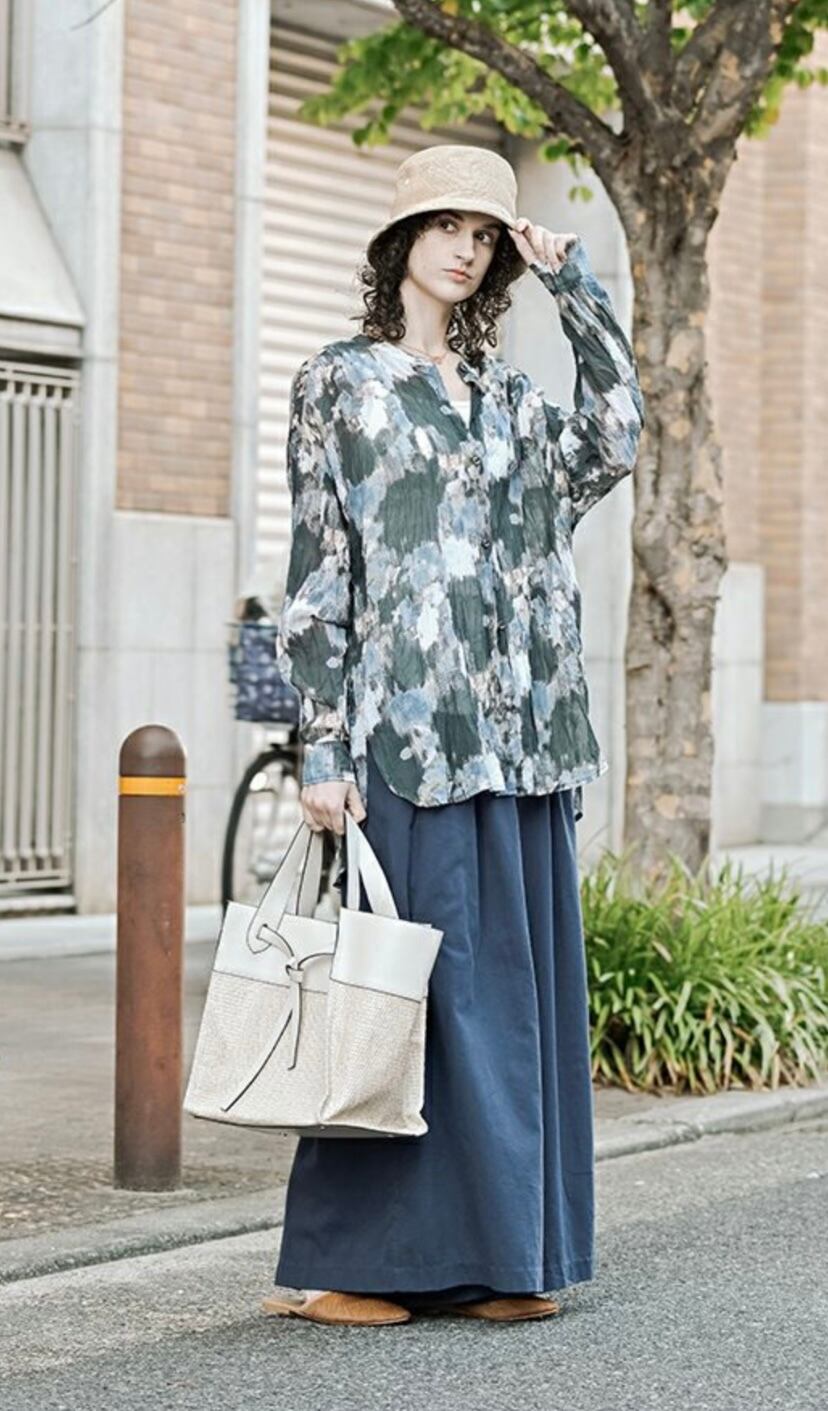 着丈も少し長いシャツなので、ショート丈のトップスを中にレイヤードするだけで一気にこなれたスタイリングになります♪